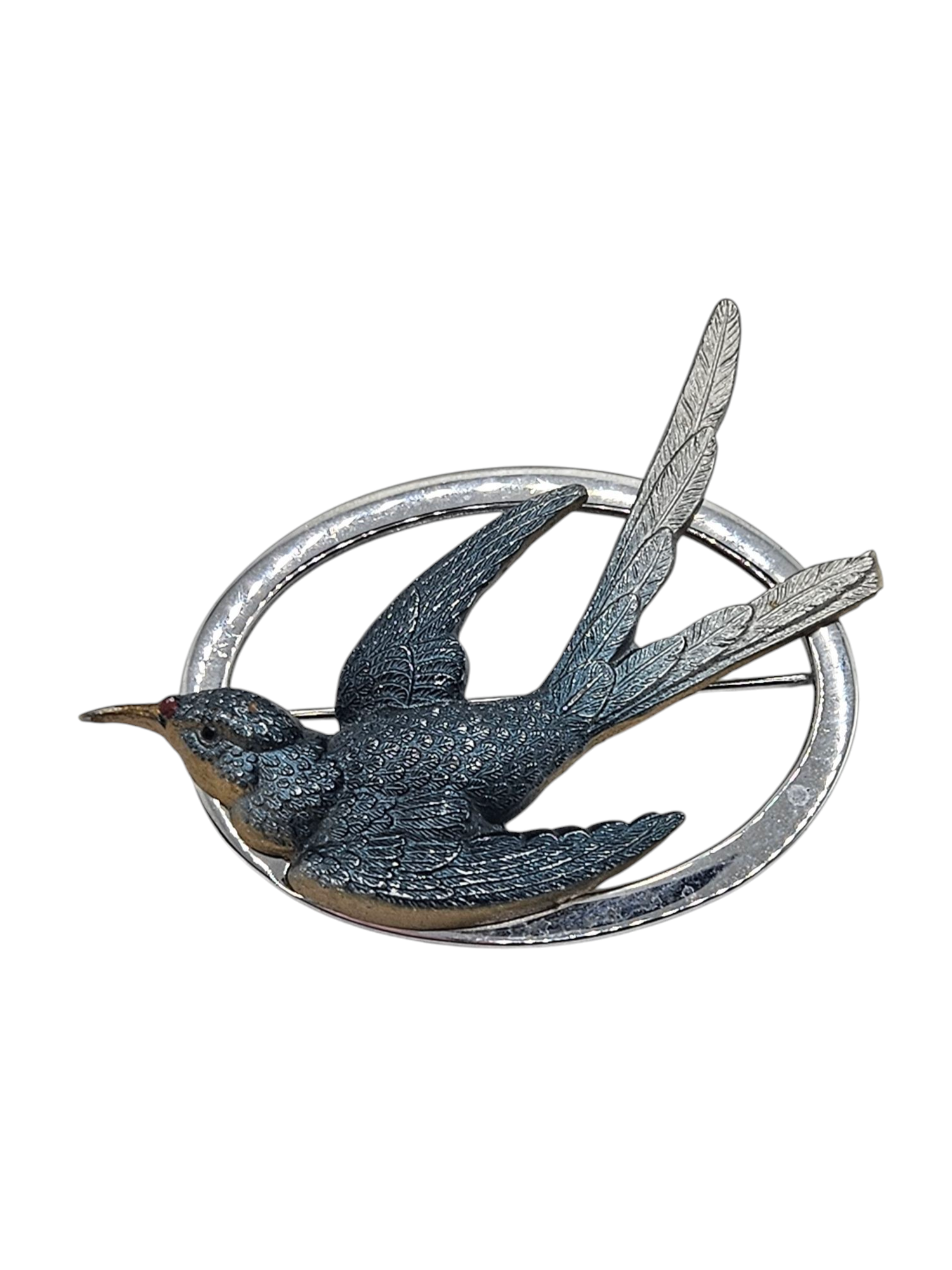 1930s Charles Horner Chrome and Celluloid Swallow Brooch