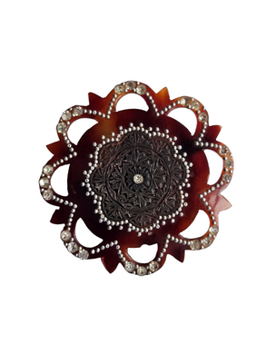 1930s Huge Purple, Green, Orange and Brown Czech Glass Filigree Brooch