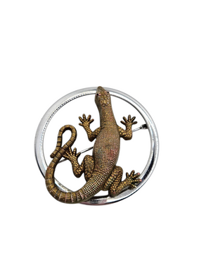 1930s Deco Celluloid and Chrome Lizard Brooch