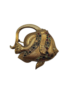 1930s Czech Multicoloured Glass Gold Tone Dress Clip
