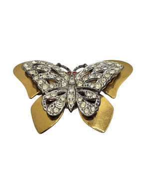 1930s Art Deco Chunky Metal Diamante Butterfly Brooch