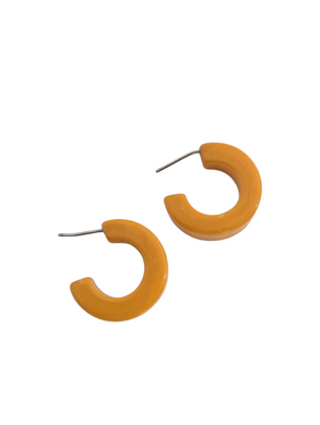 • 1940s Dark Yellow Bakelite Hoop Earrings