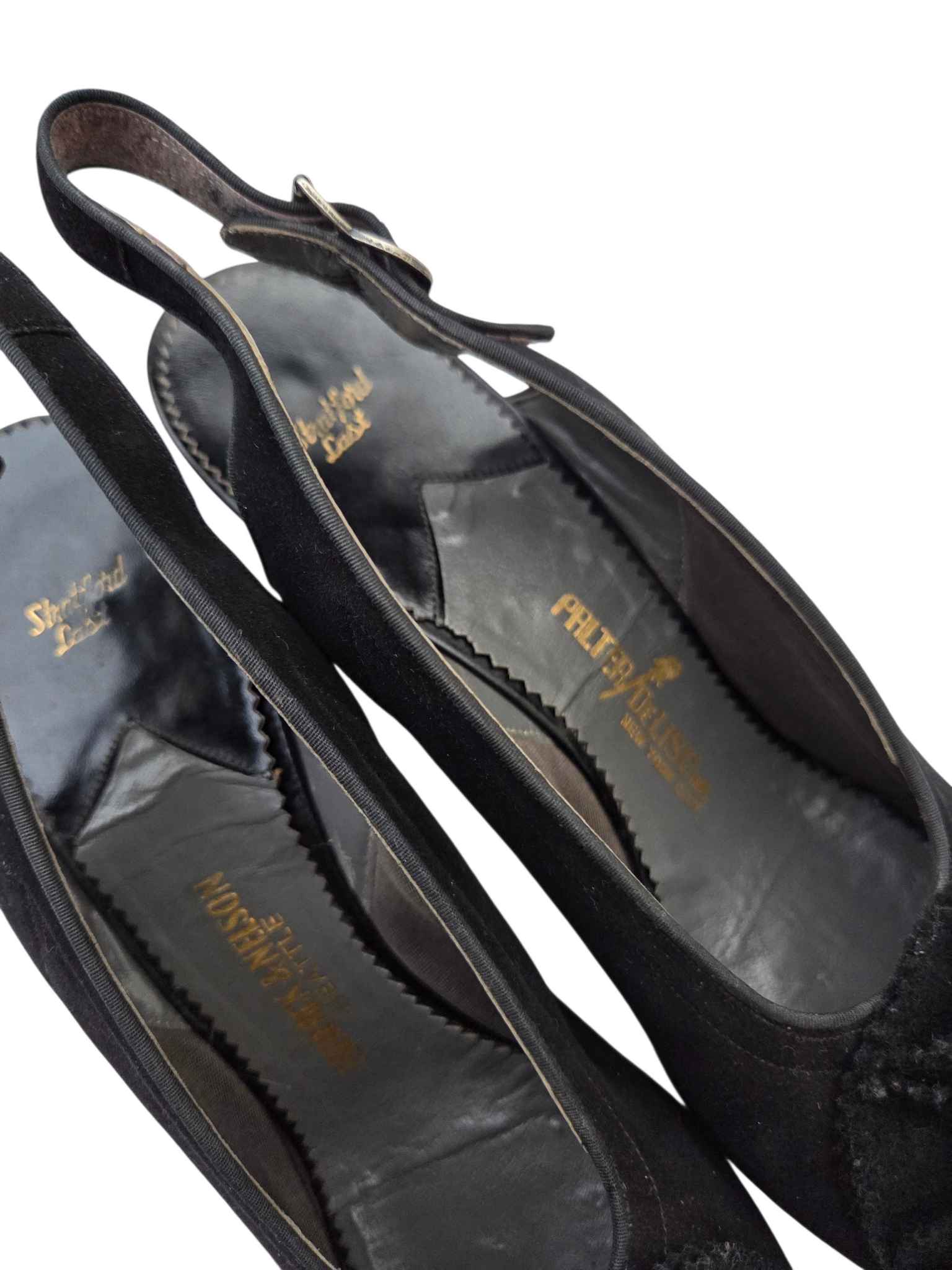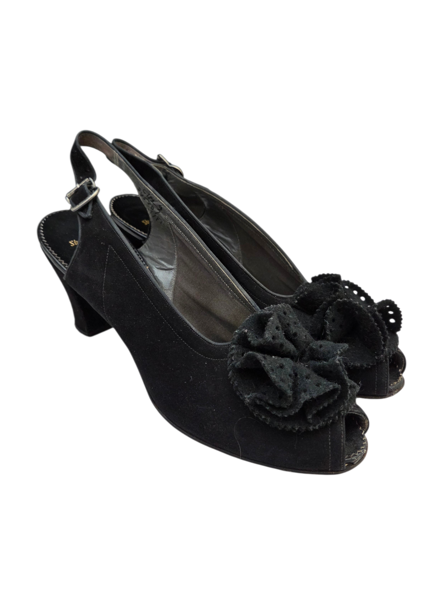 1940s Black Suede Flower Slingback Shoes