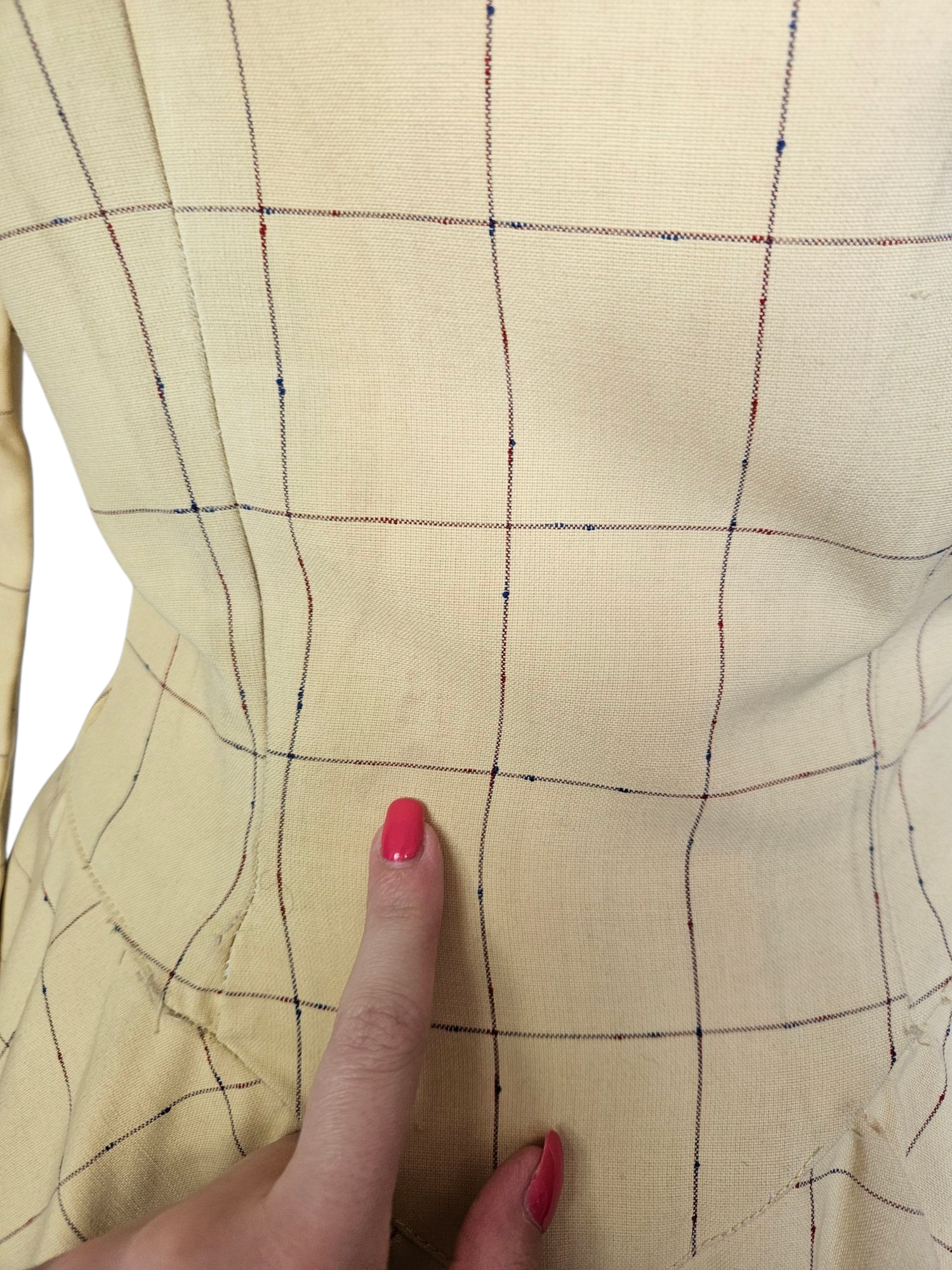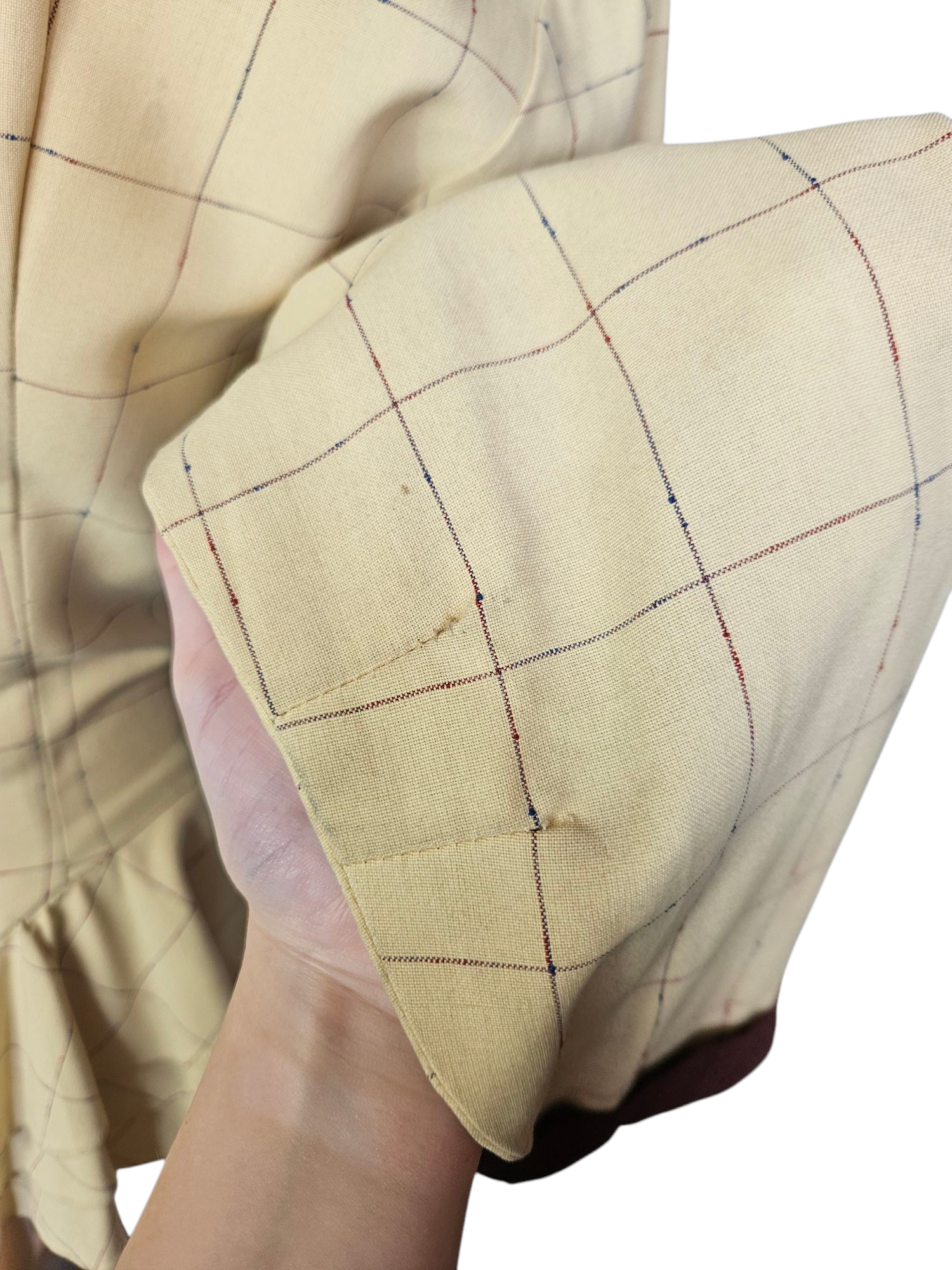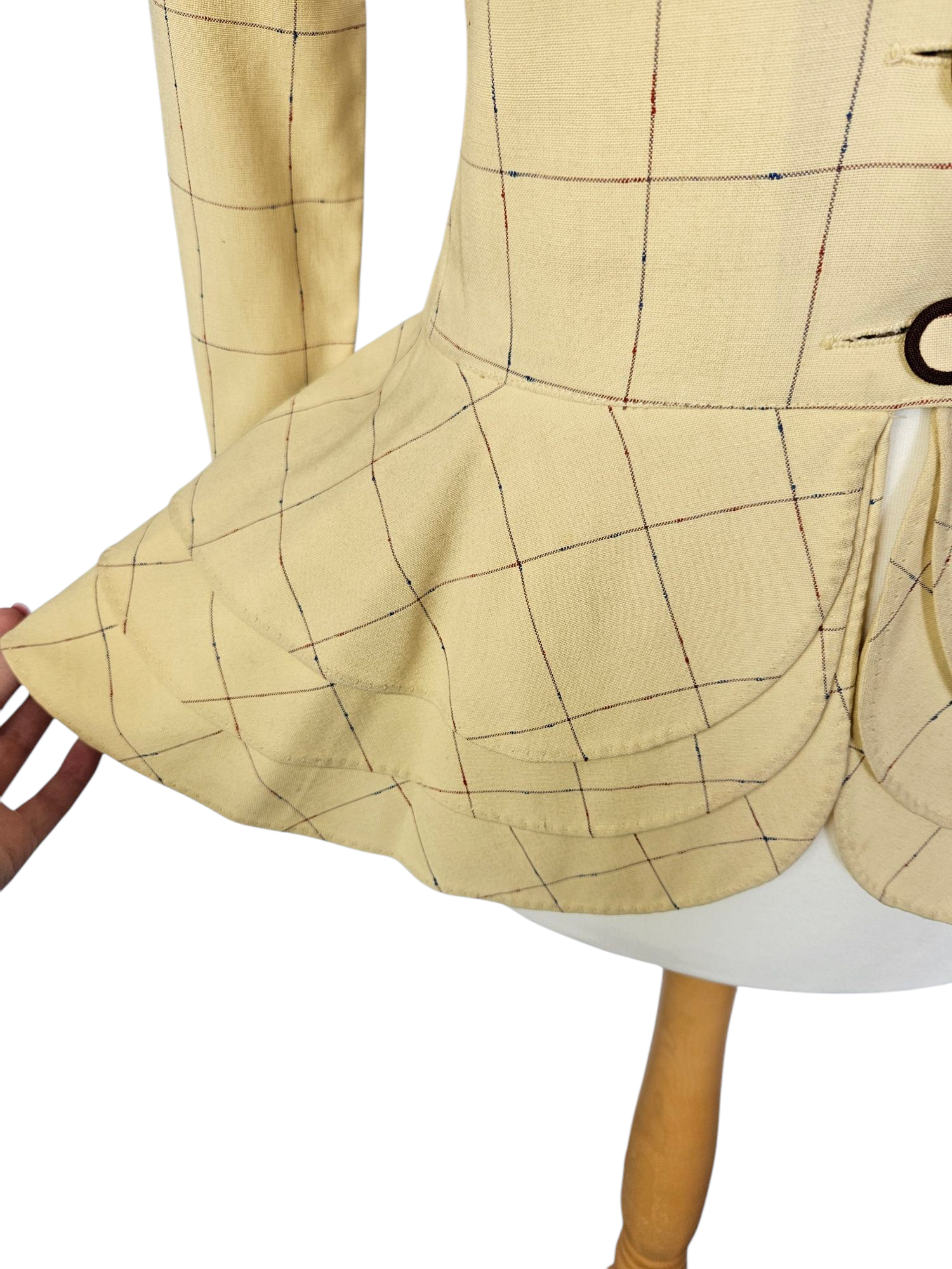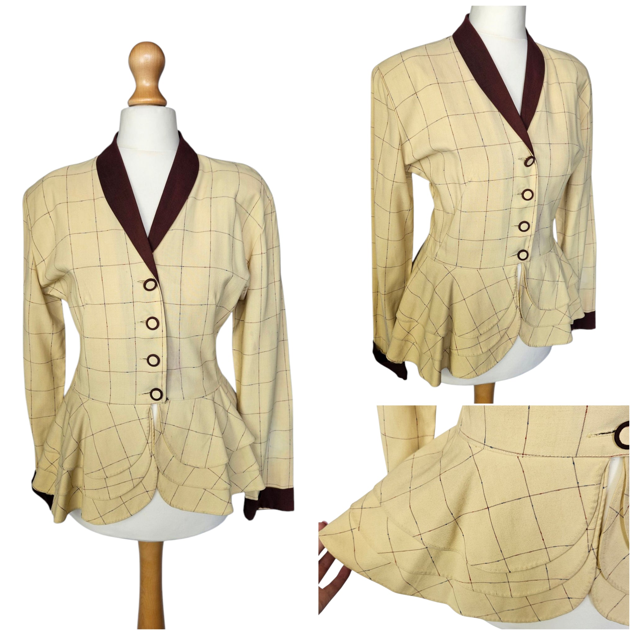 1940s Pale Yellow and Brown Check Peplum Jacket