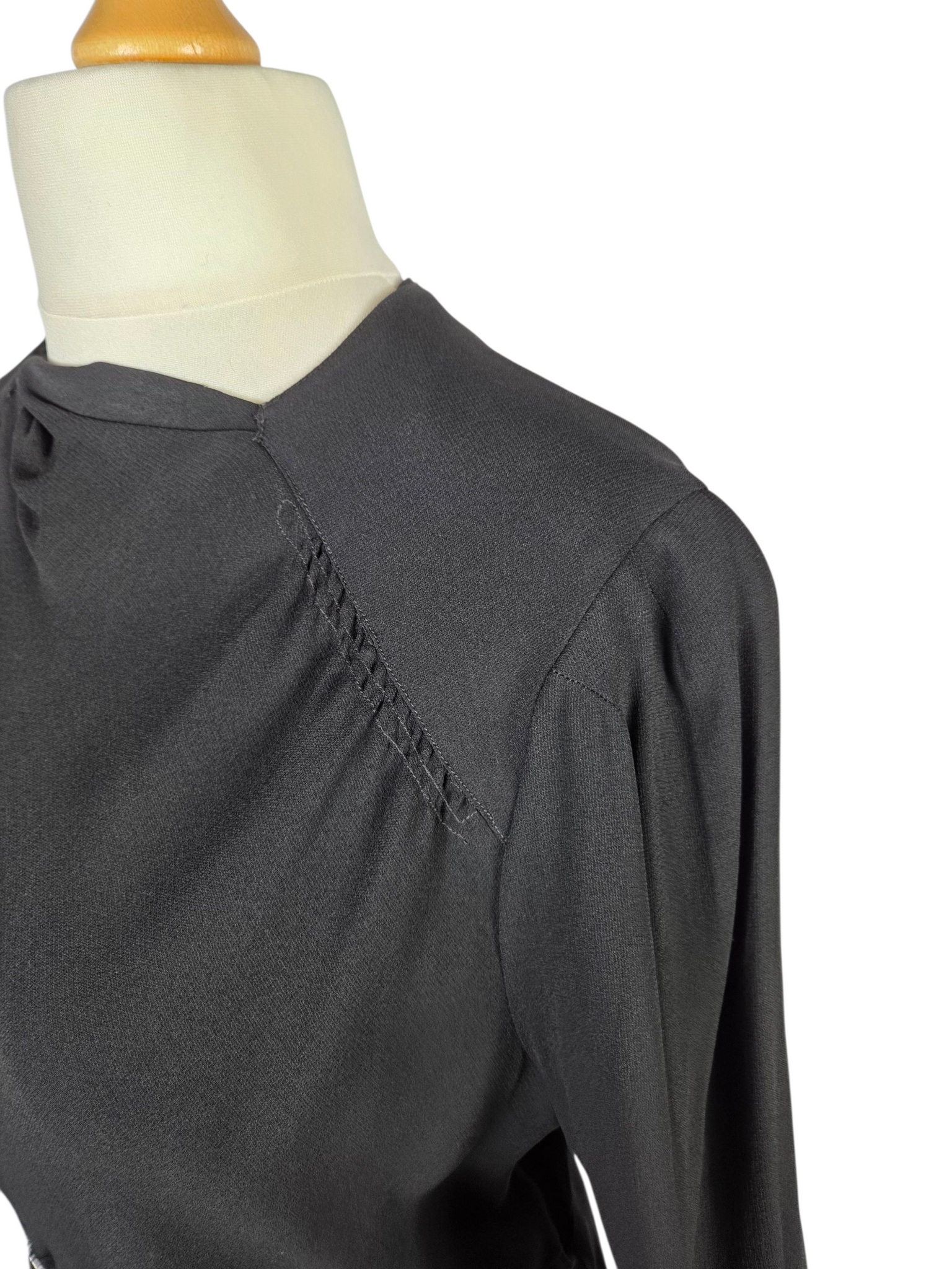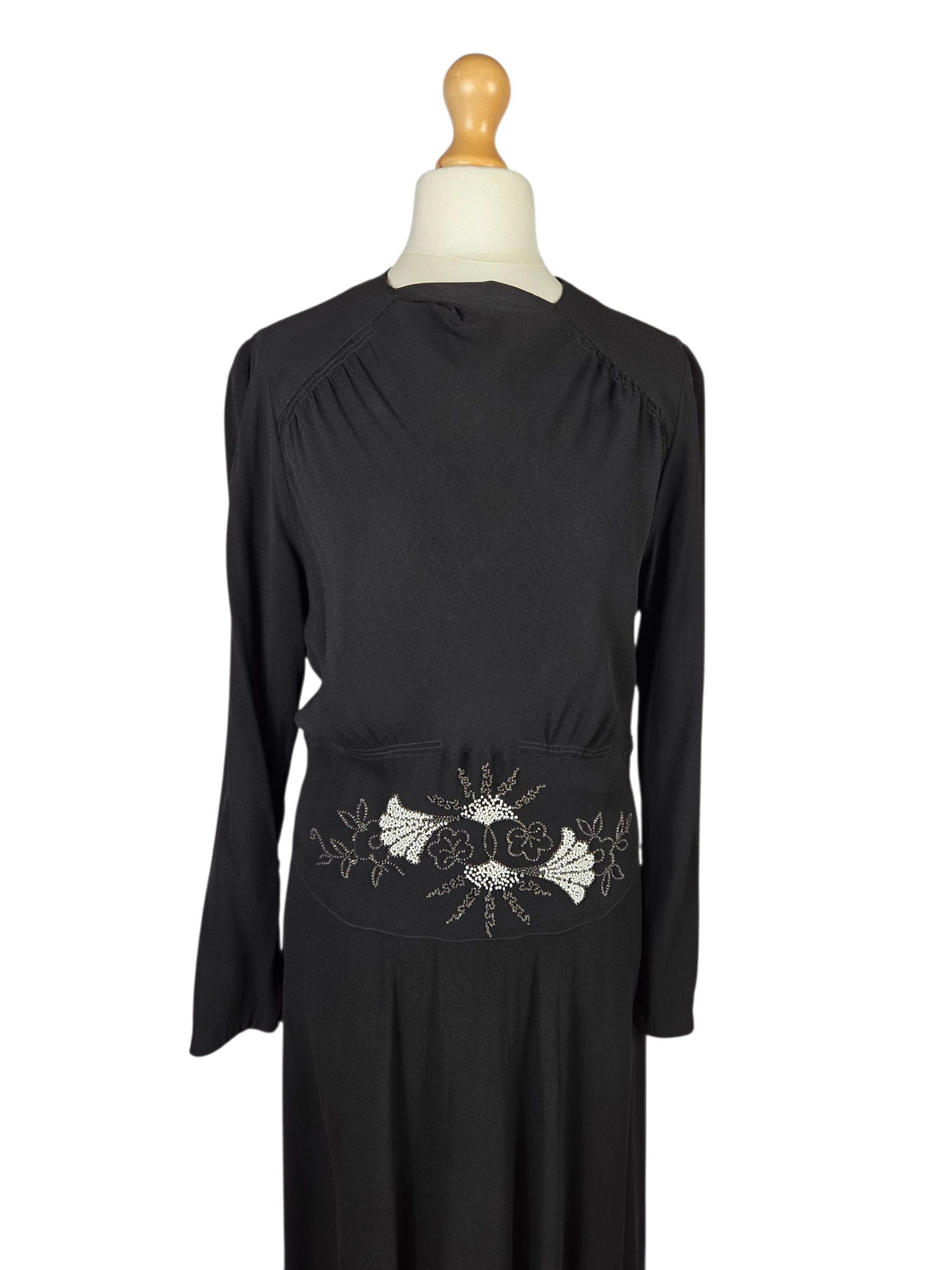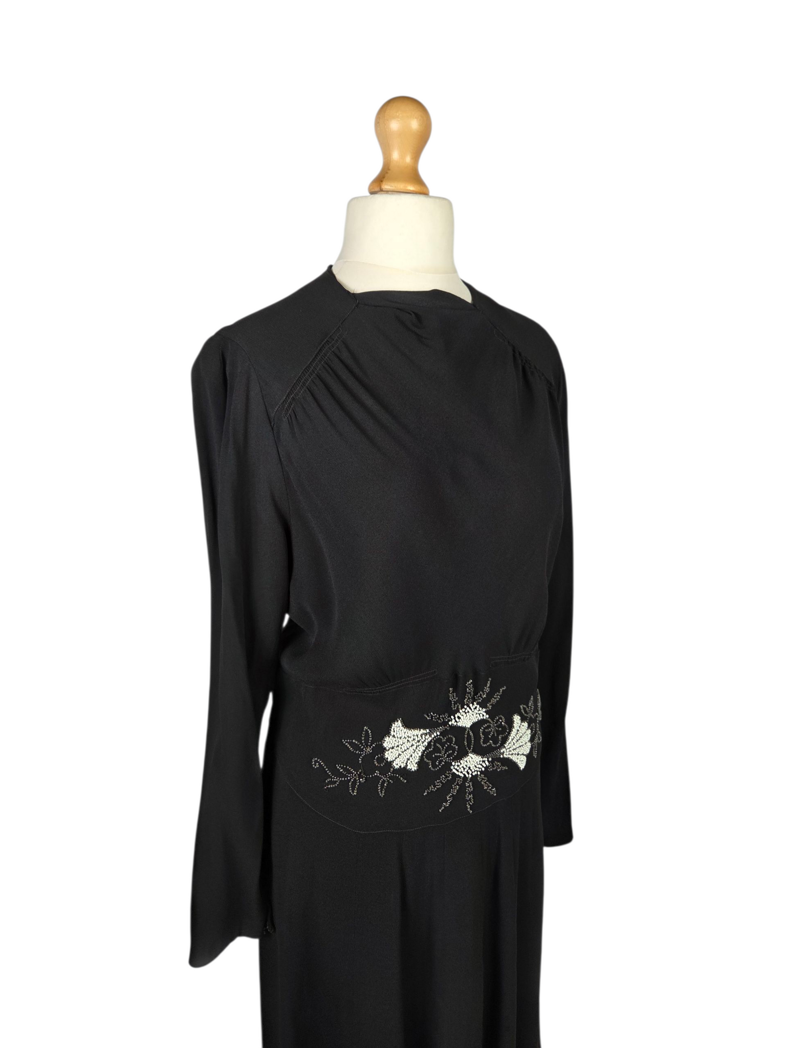 1940s Black Crepe Beaded Long Sleeve Dress