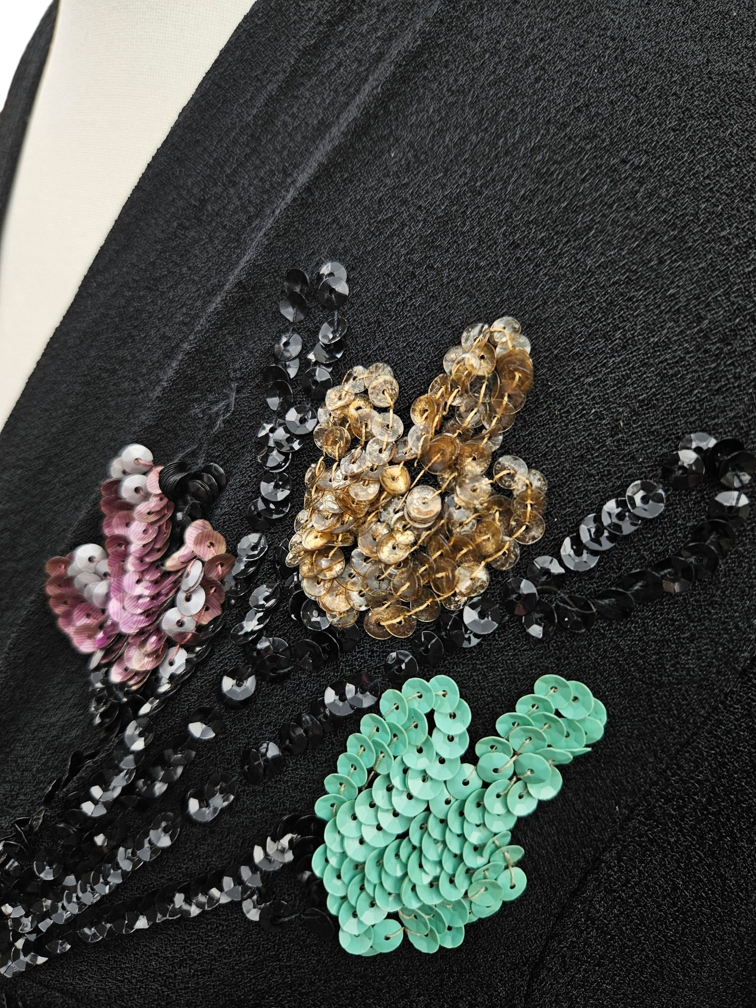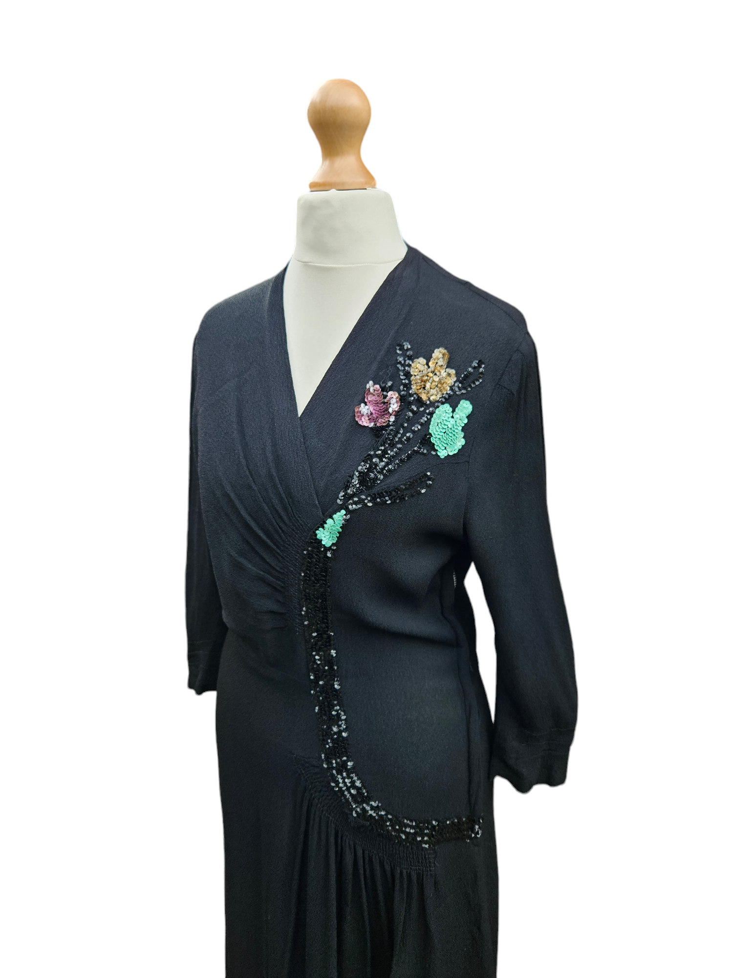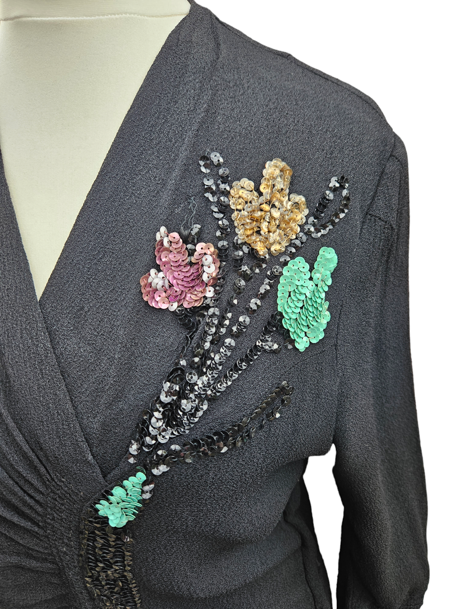 • Load image into Gallery viewer, 1940s Black Crepe Sequin Cocktail Dress