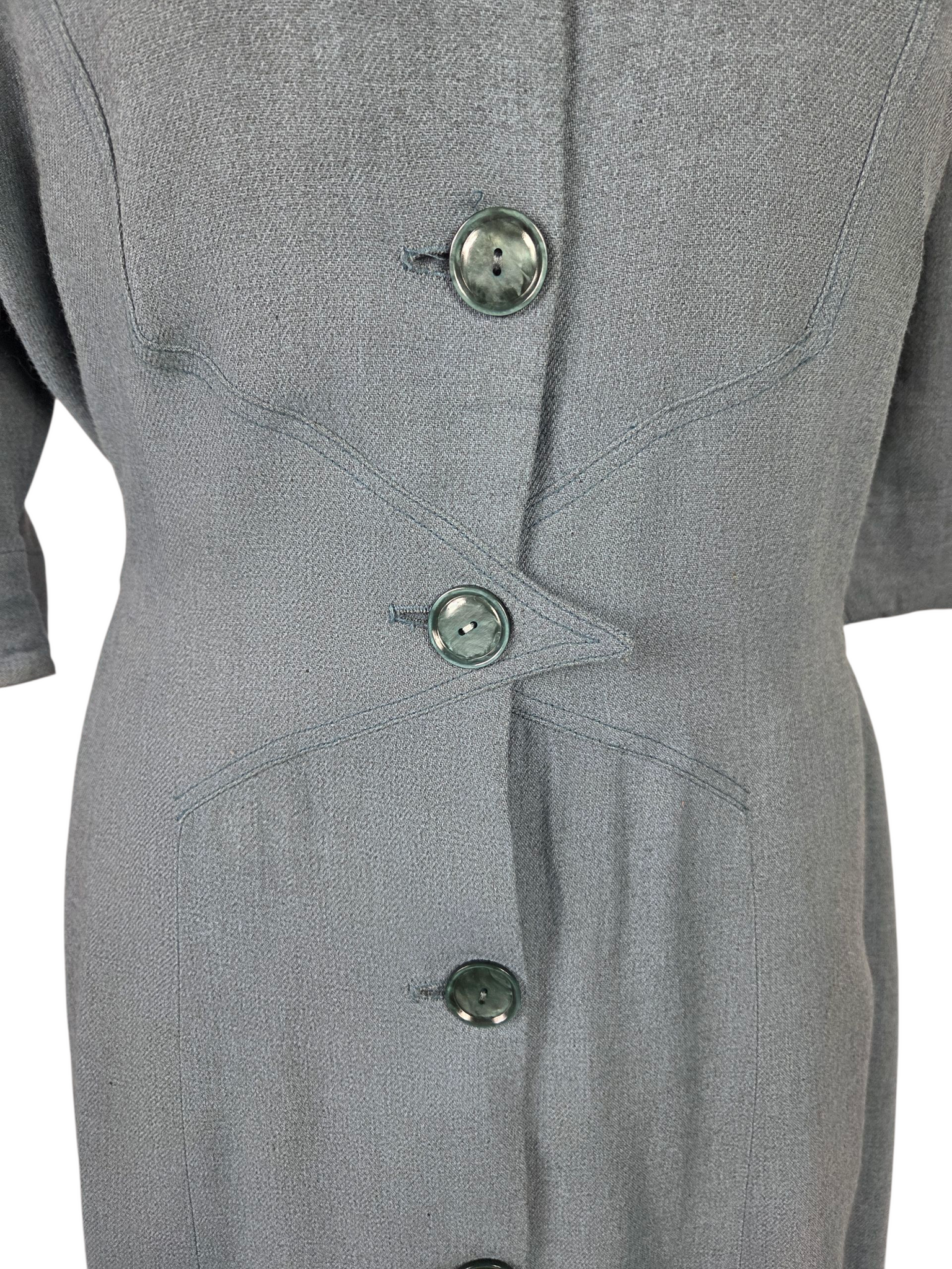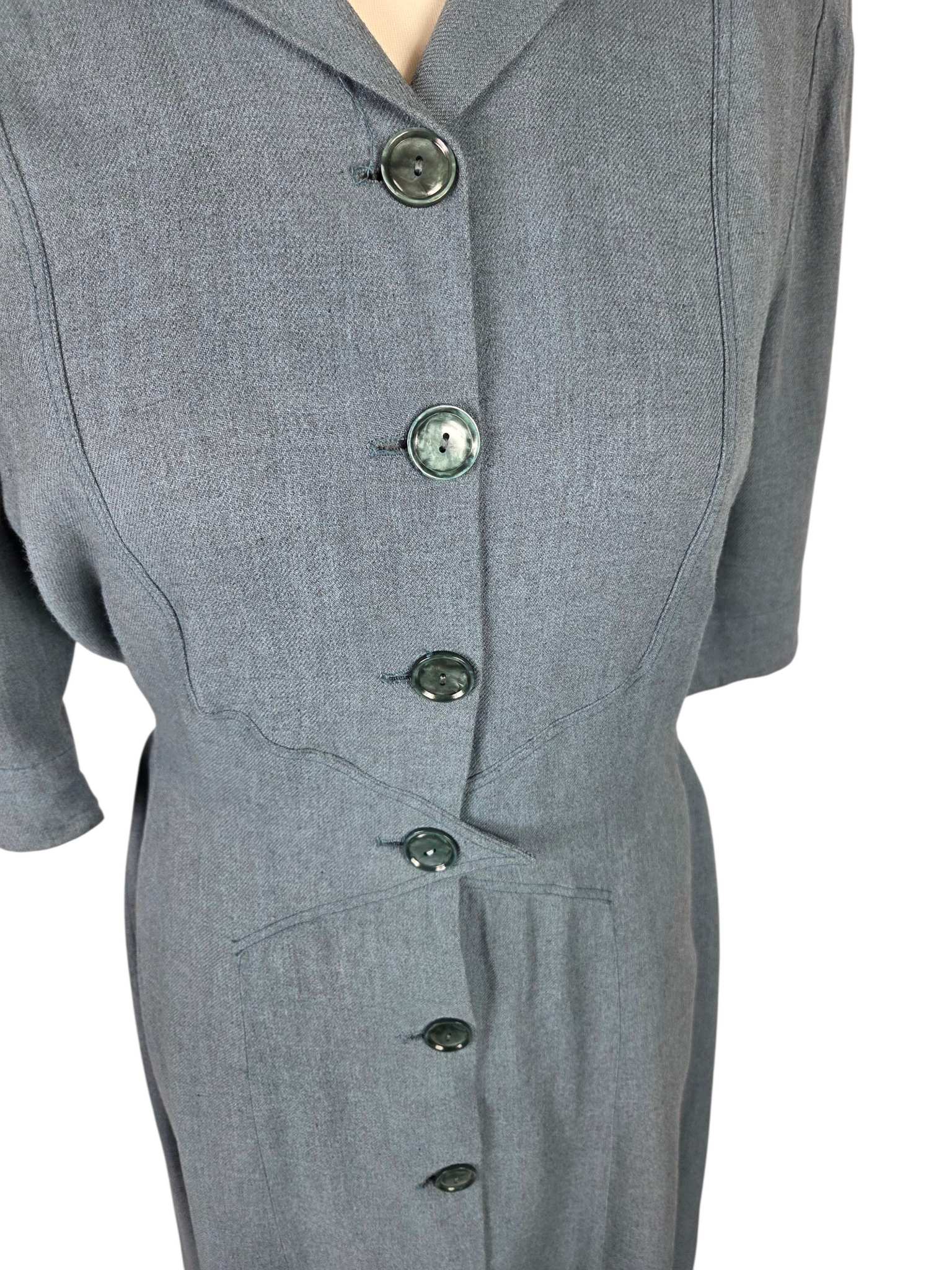1940s CC41 Dusky Blue Wool Button Dress