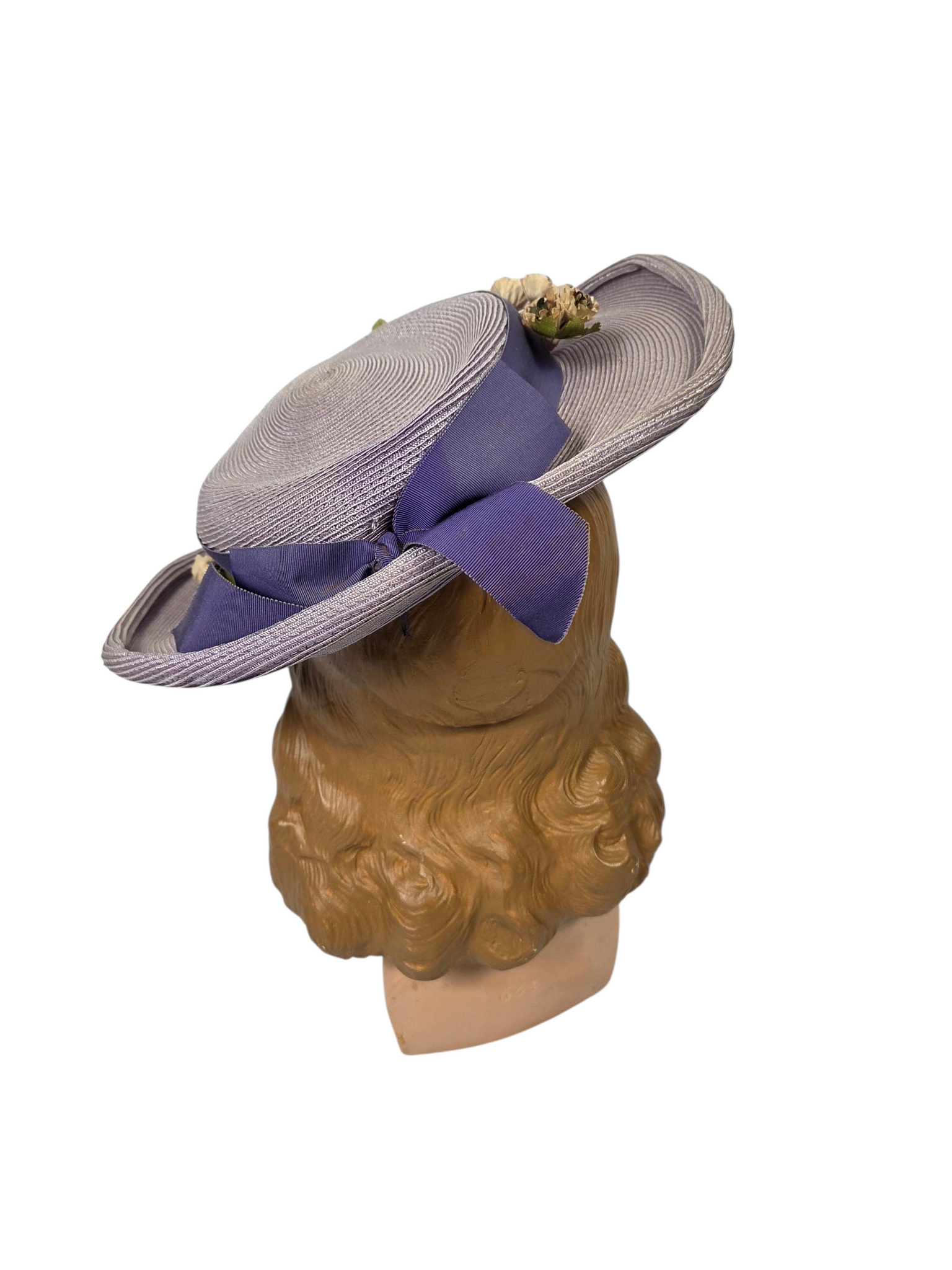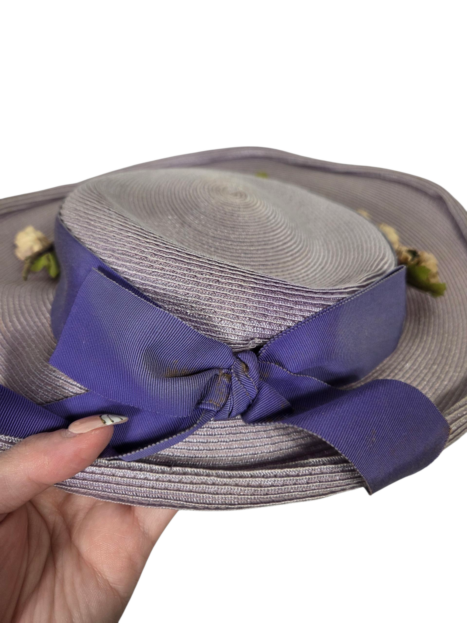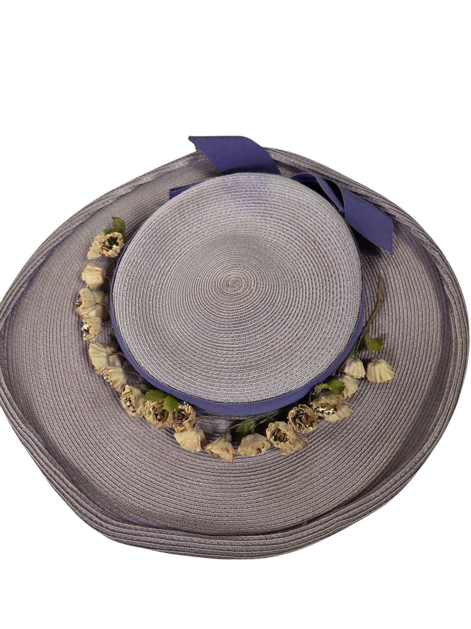 1940s Lilac Straw/Raffia Hat With Flowers