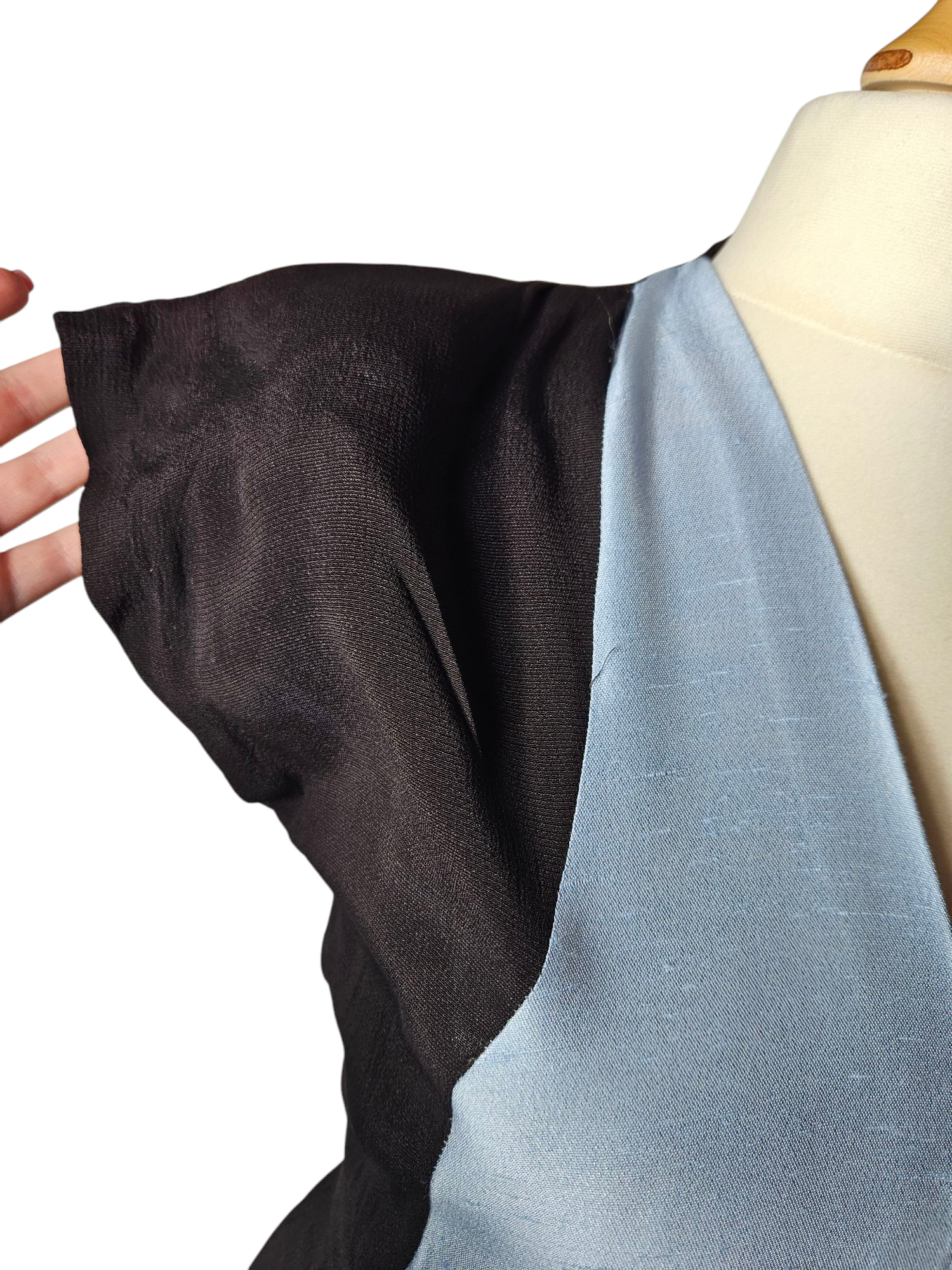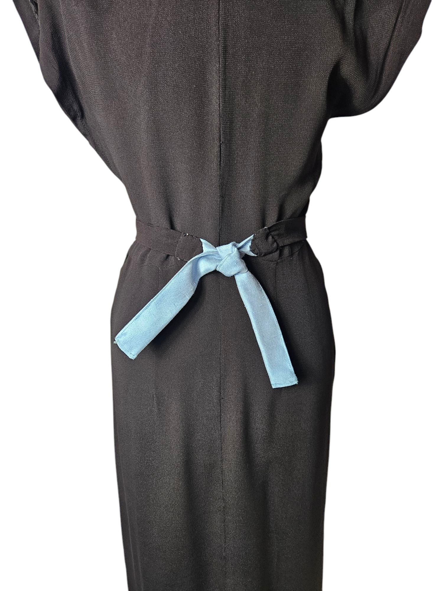 1940s Pale Blue and Black Colourblock Long Tie Dress