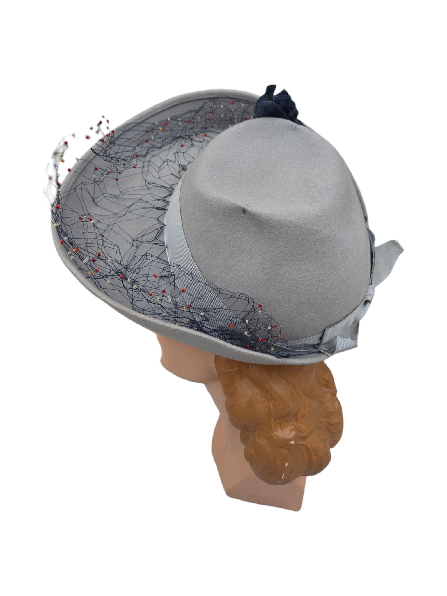 RESERVED FOR AURORA - PLEASE DO NOT BUY 1940S Rare Dusky Blue Fedora Hat With Feathers