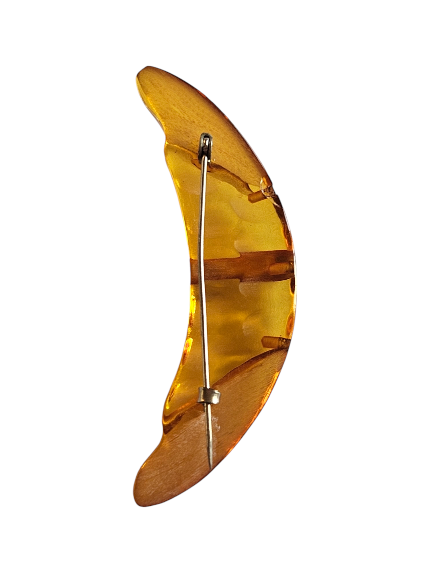 1940s Apple Juice Bakelite Crescent Moon Paste Brooch