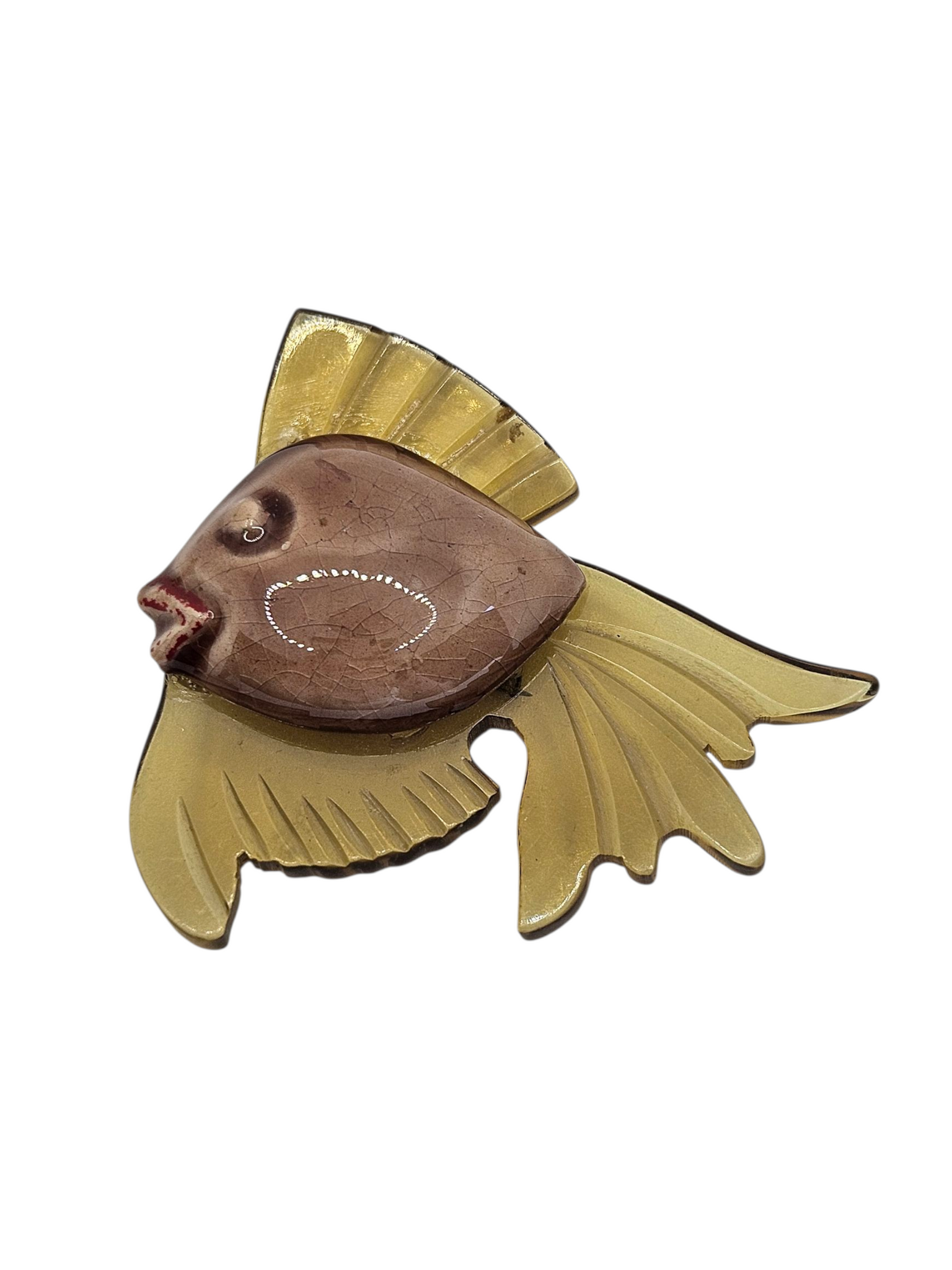 1940s Beige/Taupe Elzac Lucite Fish Brooch