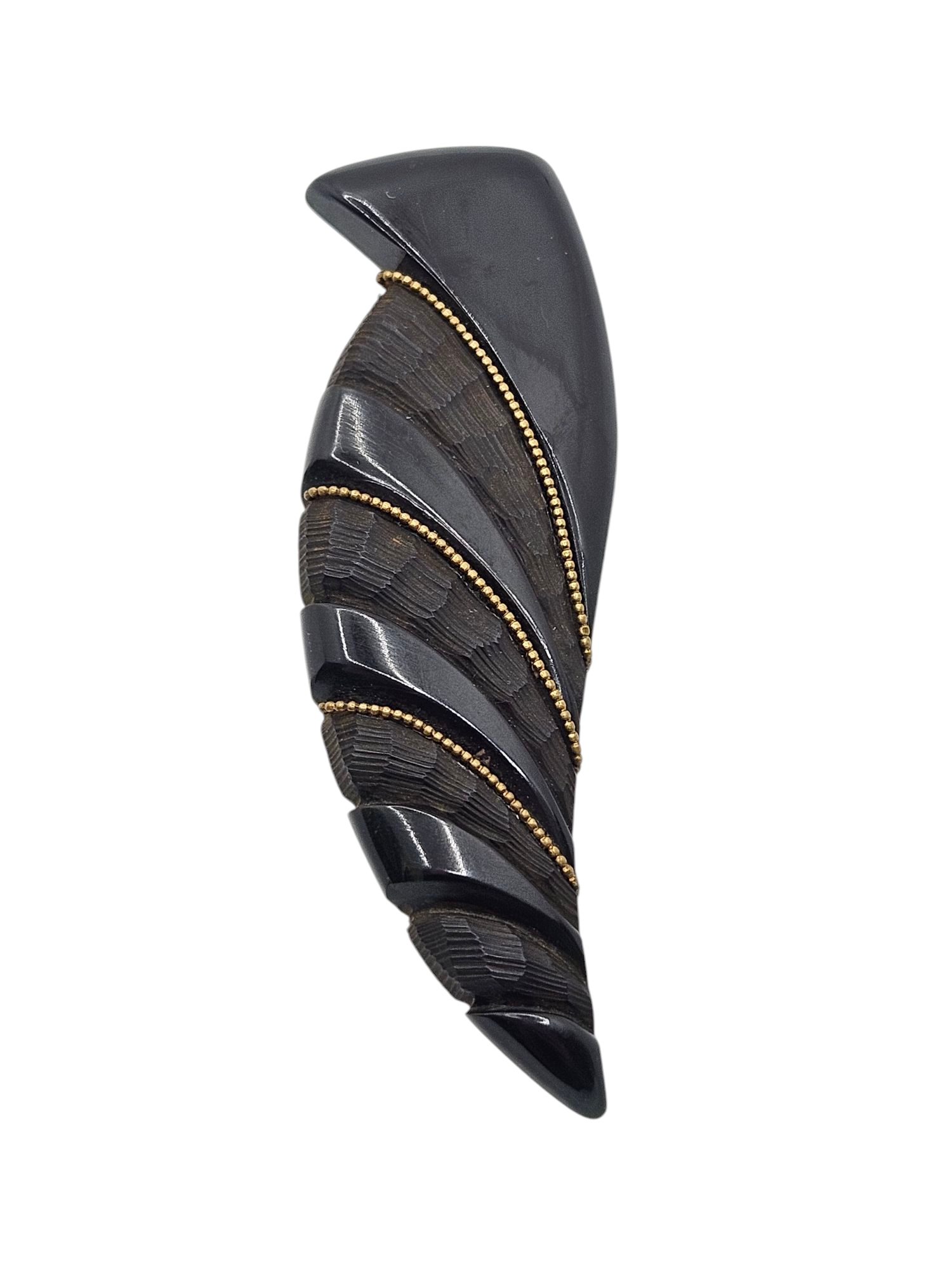 1940s Dark Blue Moon Pointy Bakelite Brooch With Inlaid Brass