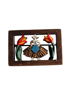 1940s Carved Wood Alpine Flower Dutch Brooch