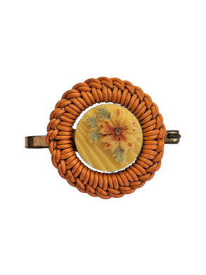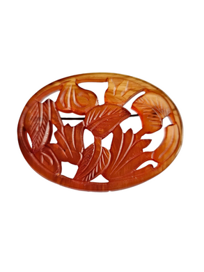 1930s HUGE Czech Orange Glass Filigree Dome Brooch