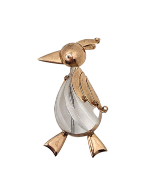1940s Brass and Carved Lucite Duck/Penguin Brooch