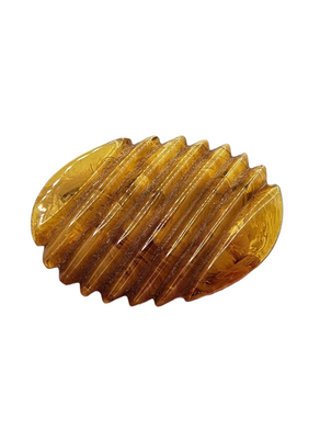 1940s Carved Bakelite Butterscotch Ribbed Brooch