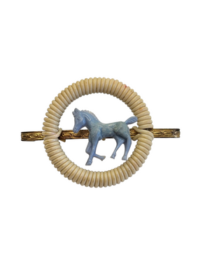1940s Cream and Blue Make Do and Mend Wirework Horse Brooch