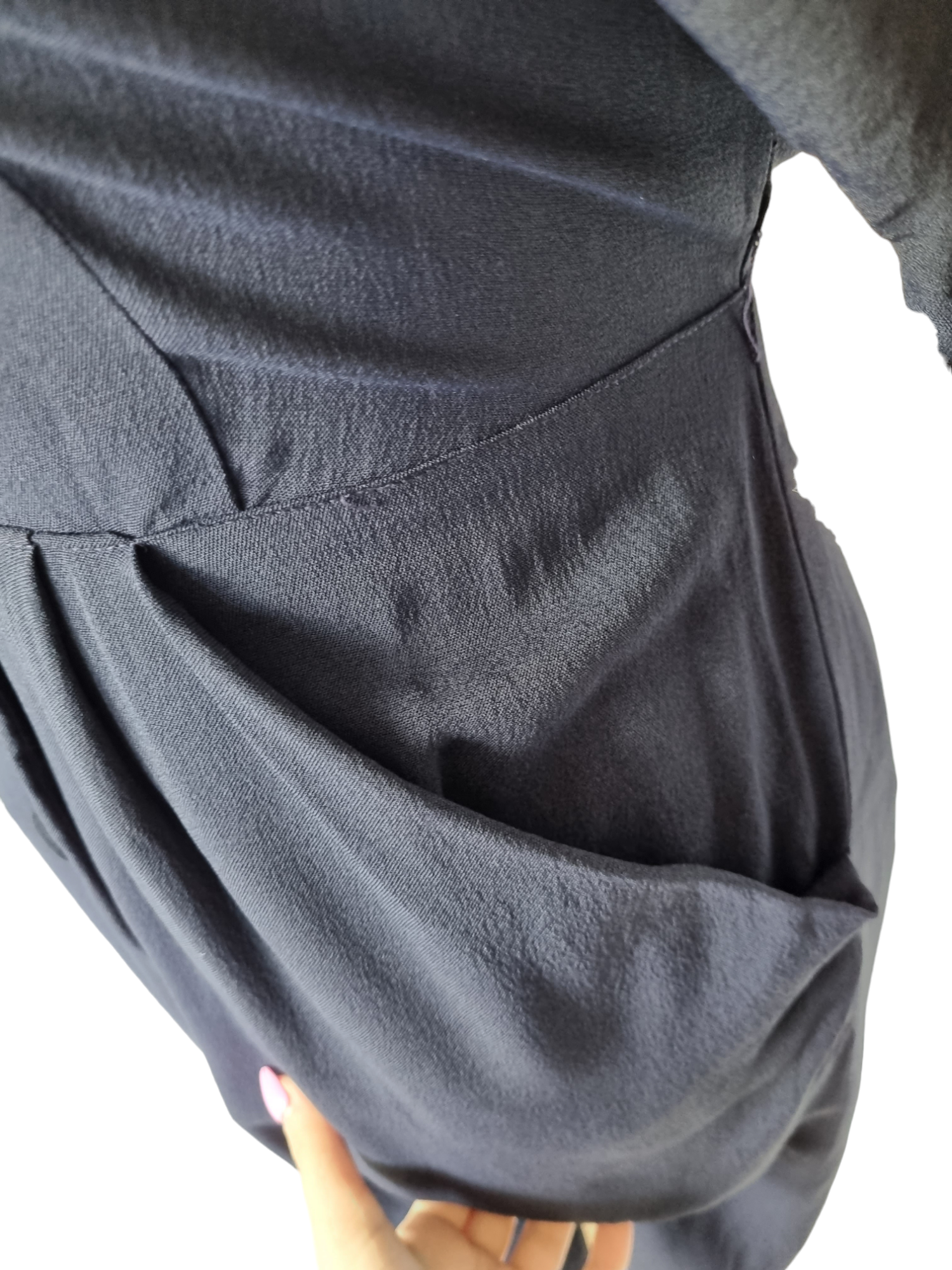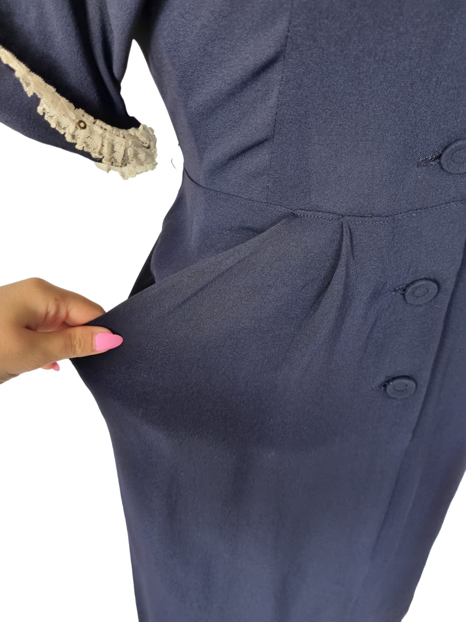 1940s Navy Blue Crepe Dress With Lace Sleeves