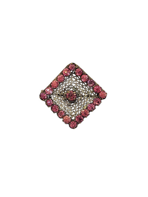 1930s Tiny Czech Pink Glass Filigree Brooch