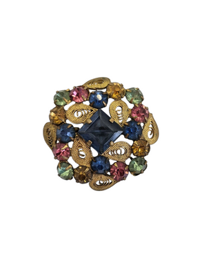1930s Czech Bright Multicoloured Glass Filigree Brooch