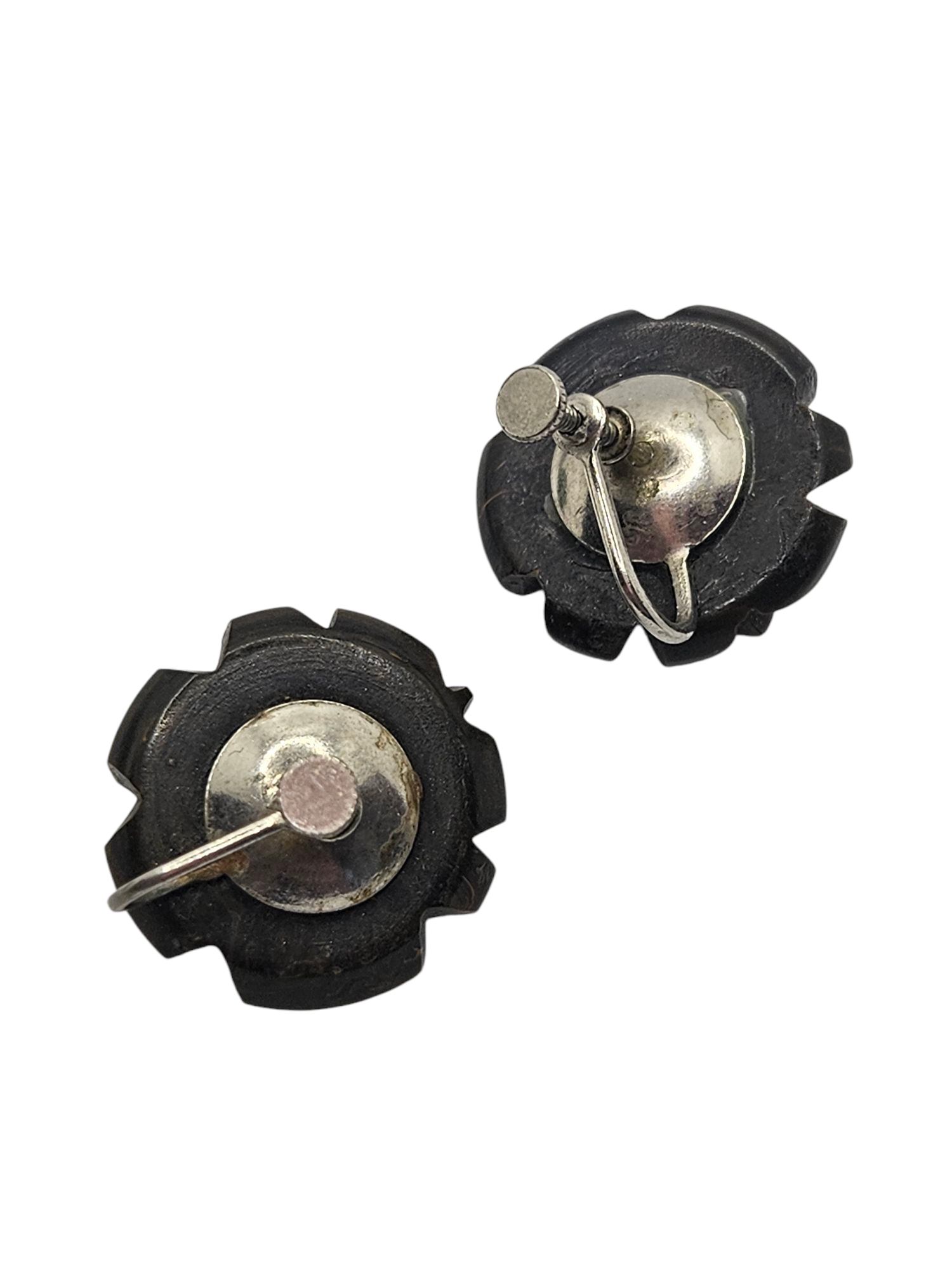 1940s Carved Bakelite Brown Screwback Earrings