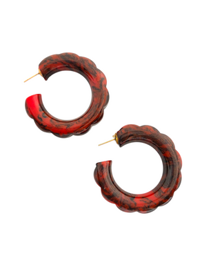 1940s MEGA Black and Red Marbled Chunky Daisy Edge Hoop Earrings