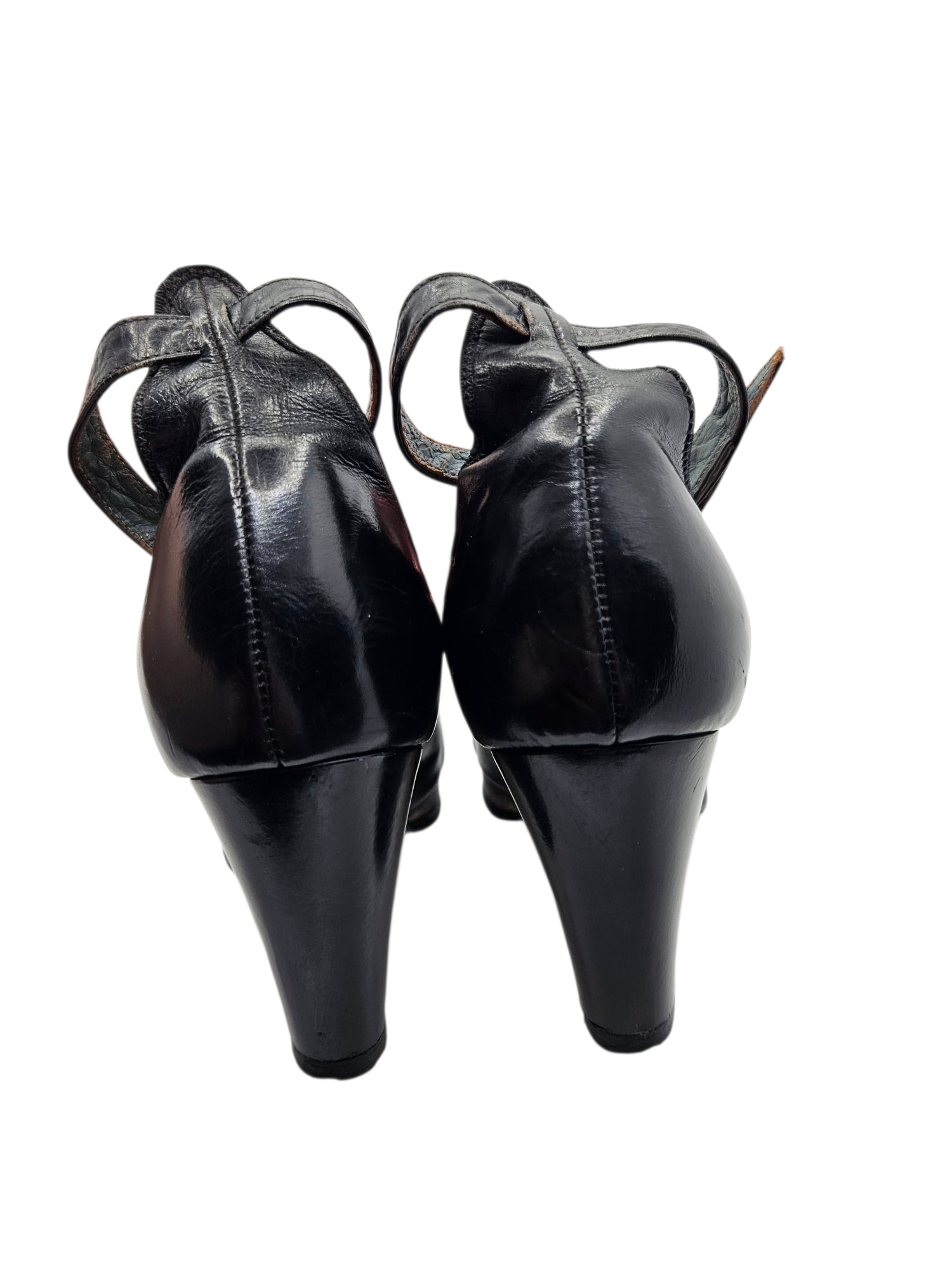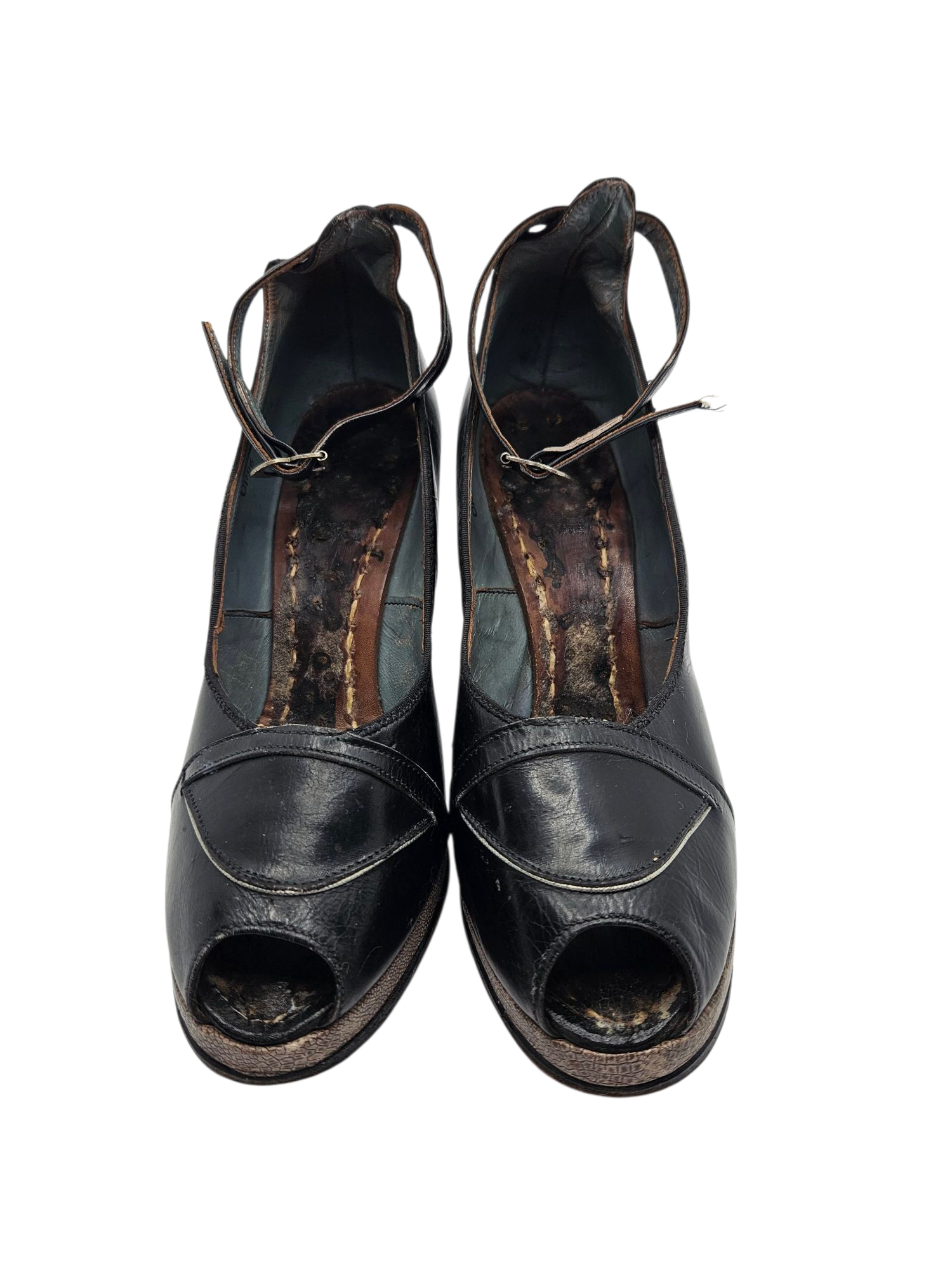 1940s CC41 Navy Blue Leather Ankle Strap Court Shoes