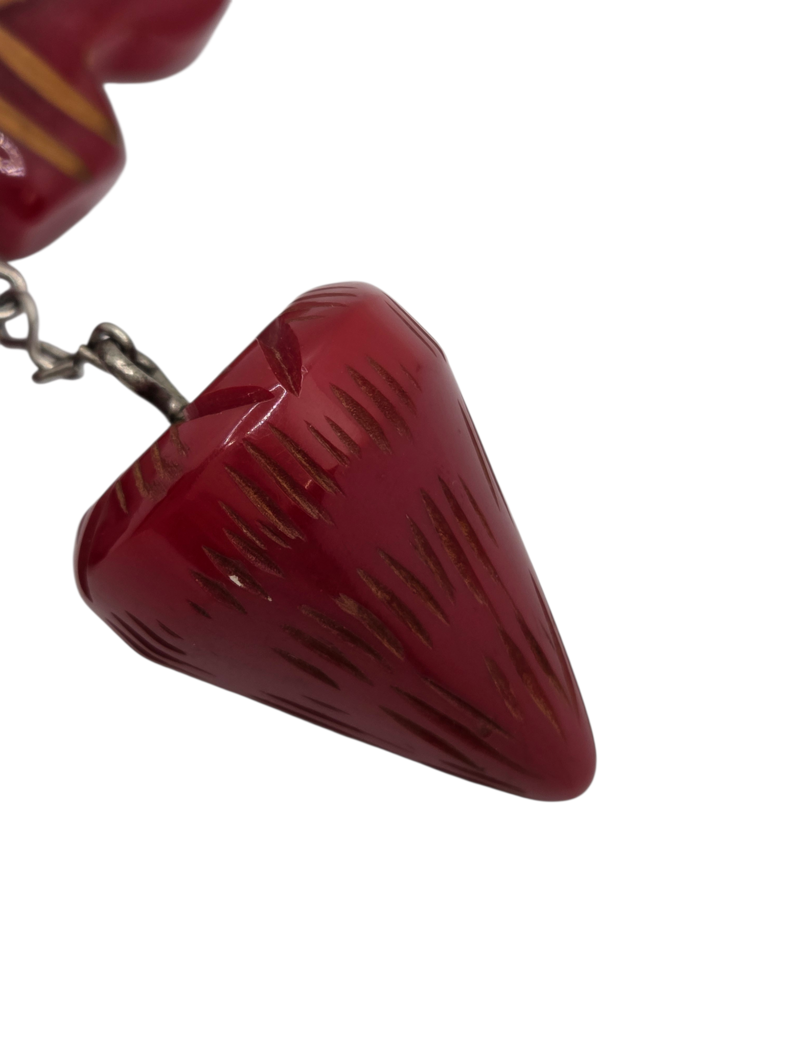 1940s HUGE Chunky Carved Bakelite Strawberry Brooch