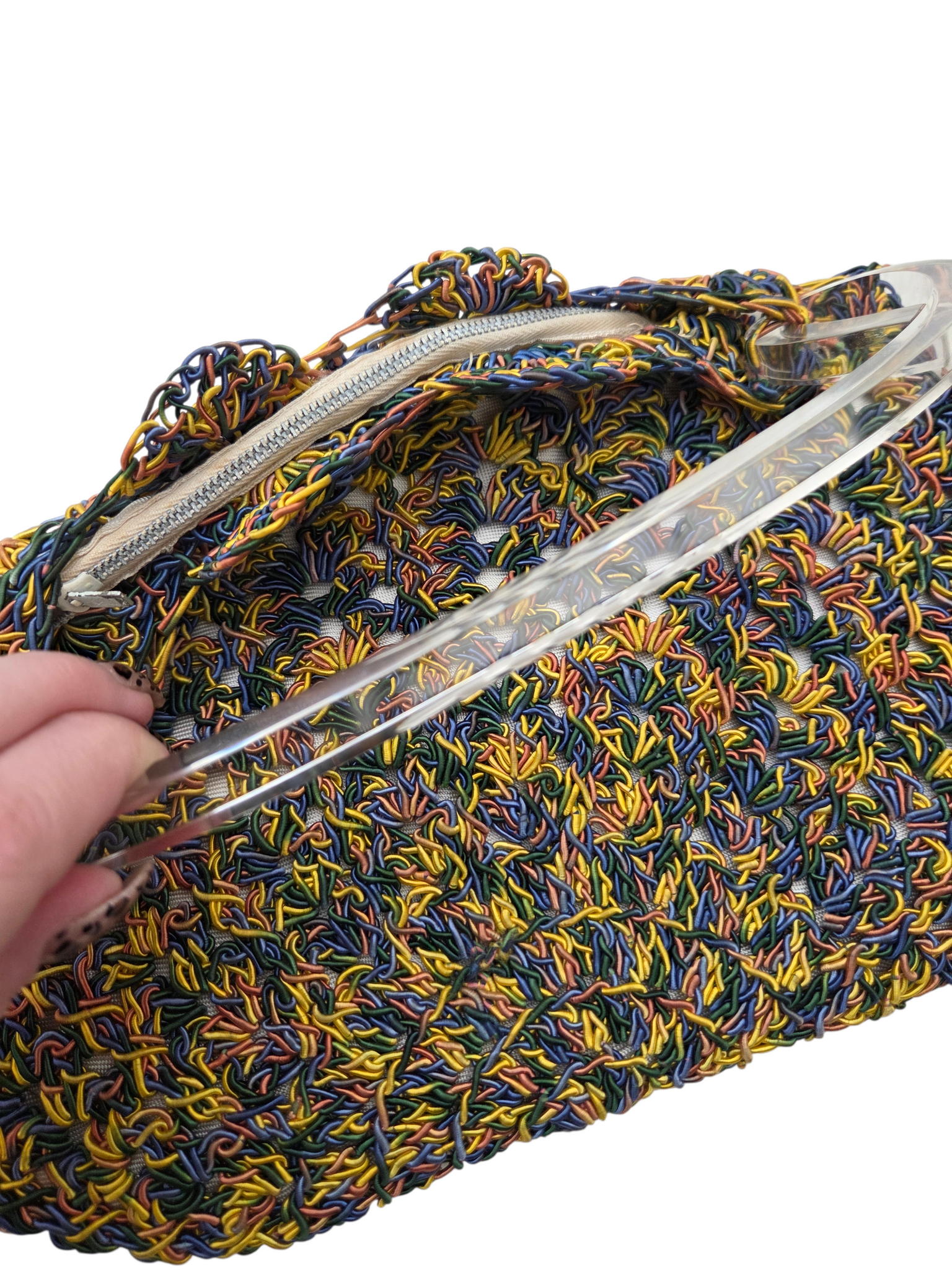 1940s RARE Multi Crochet Bag With Lucite Handle