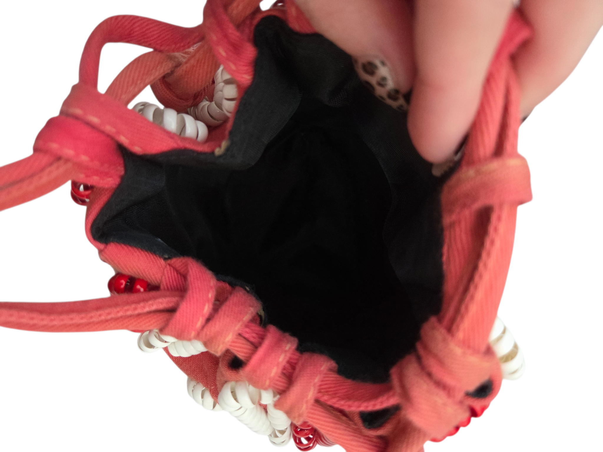 1940s RARE Red and White Drawstring Telephone Cord Bag