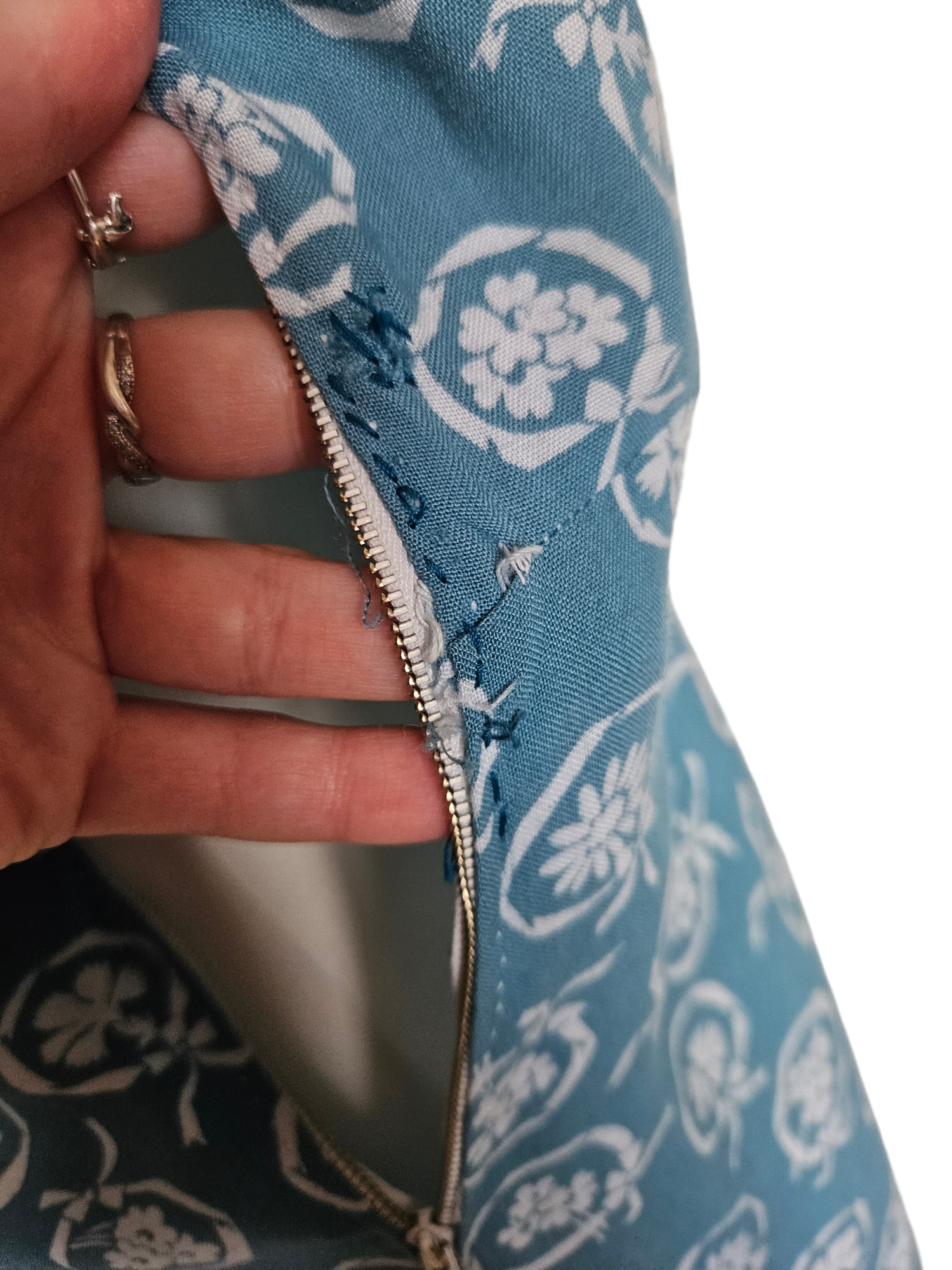 Good, a few marks, a bit faded sadly, zip has unusual stitching possibly just tacked in