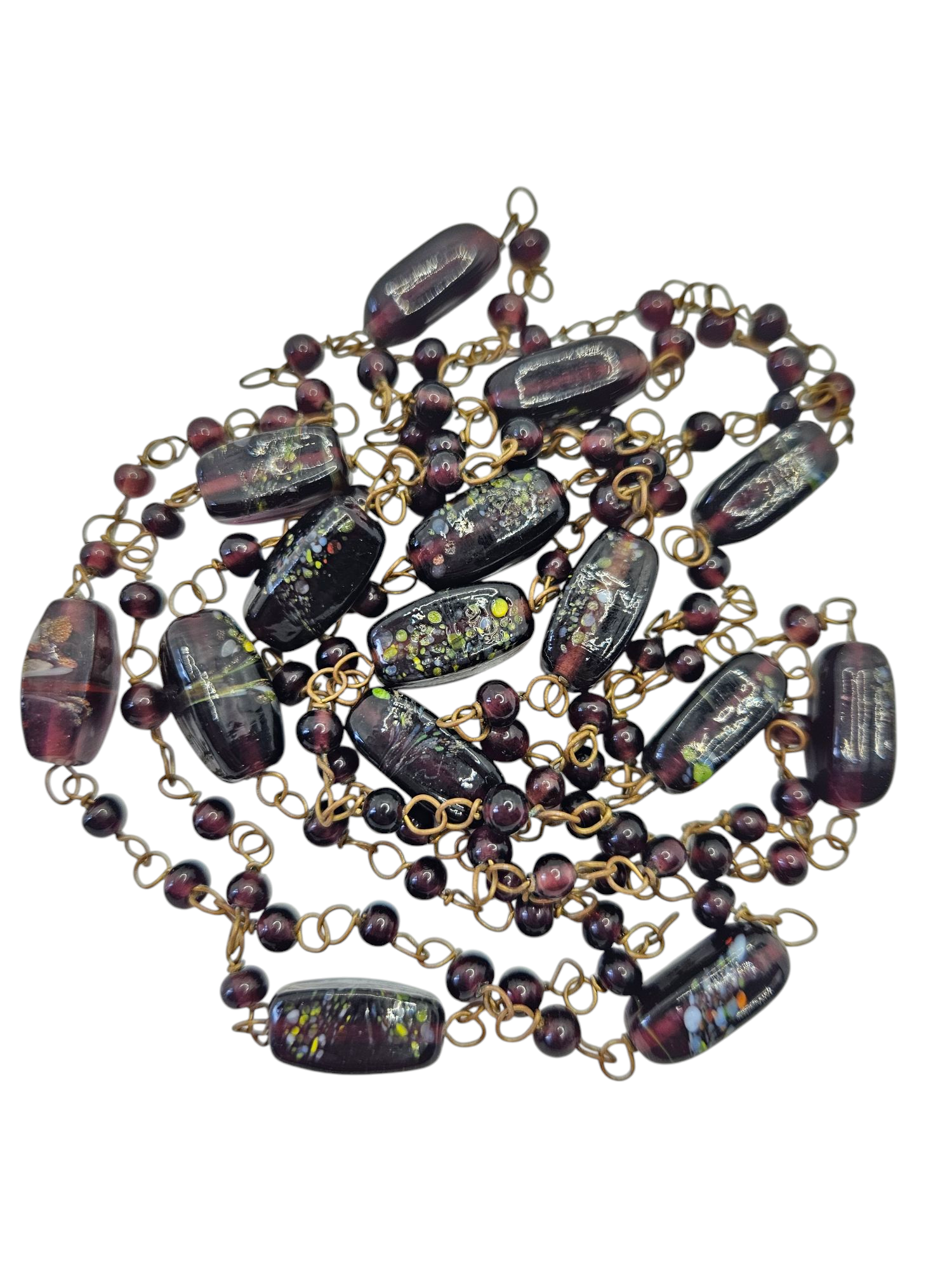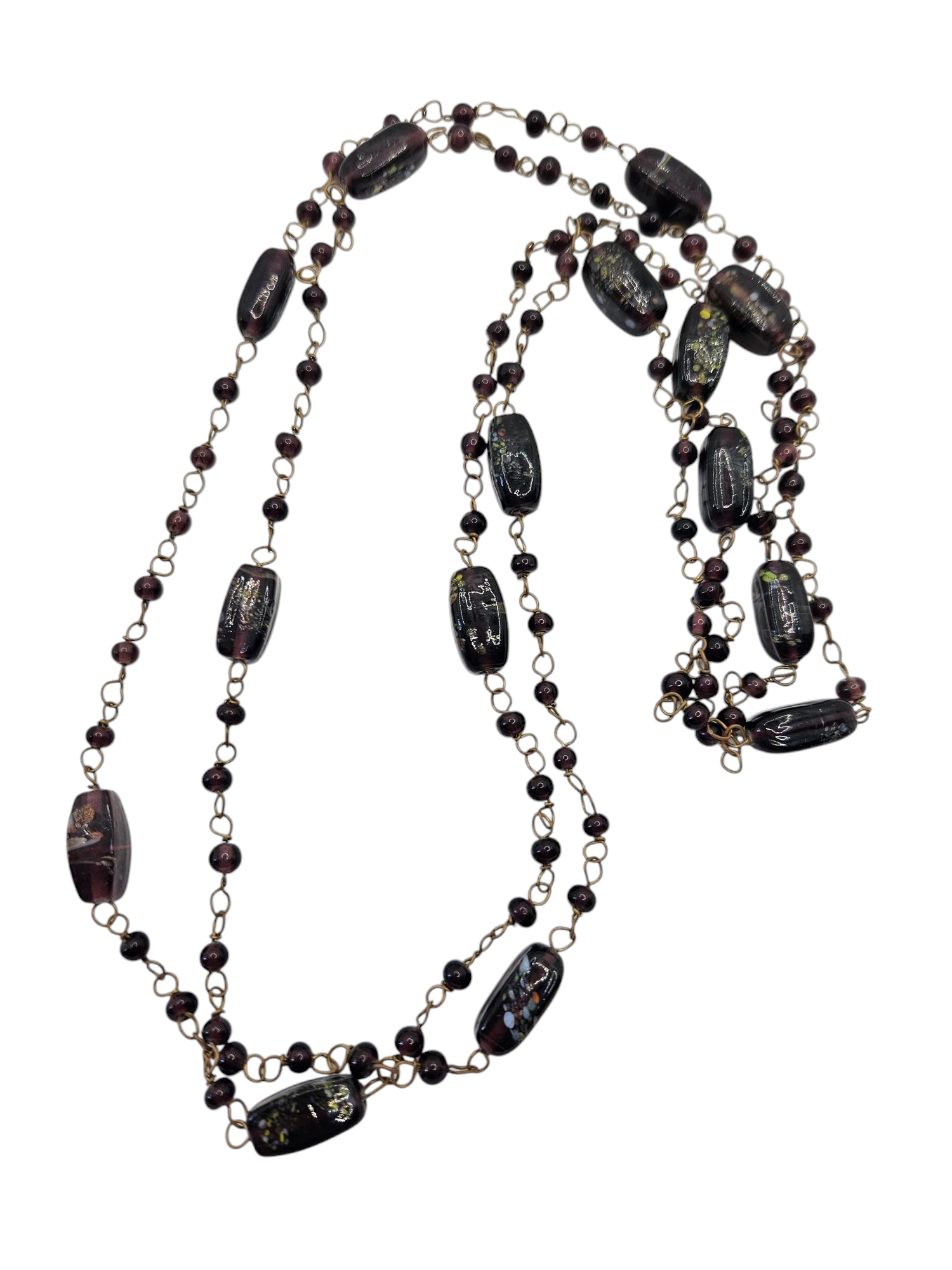 1930s Deco Purple Glass Speckled Wire Necklace