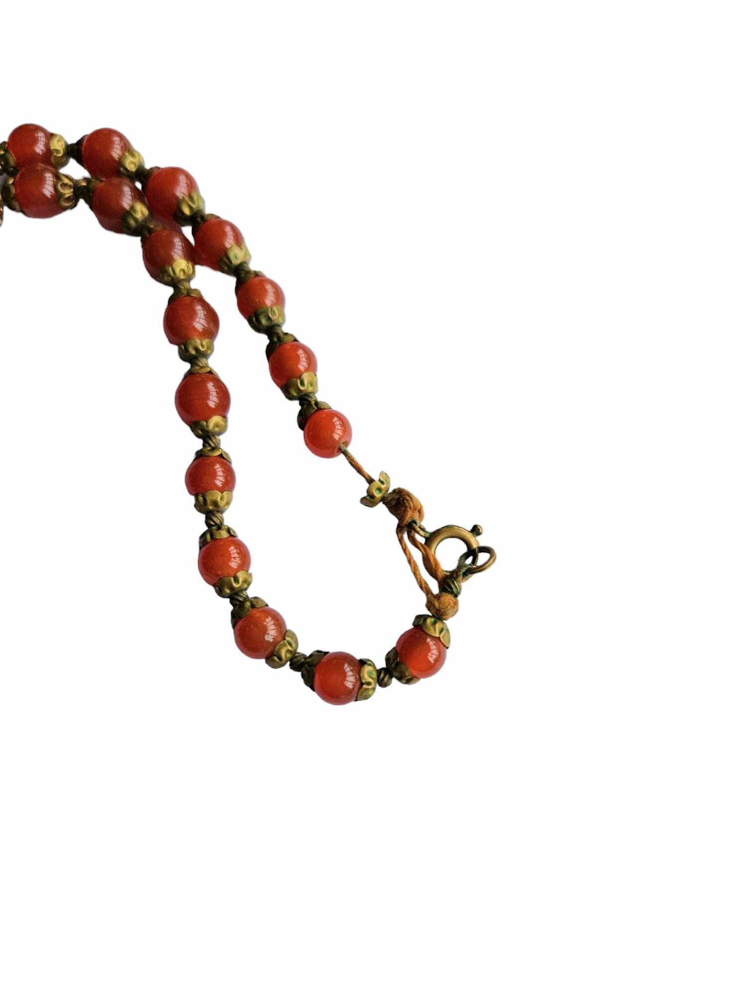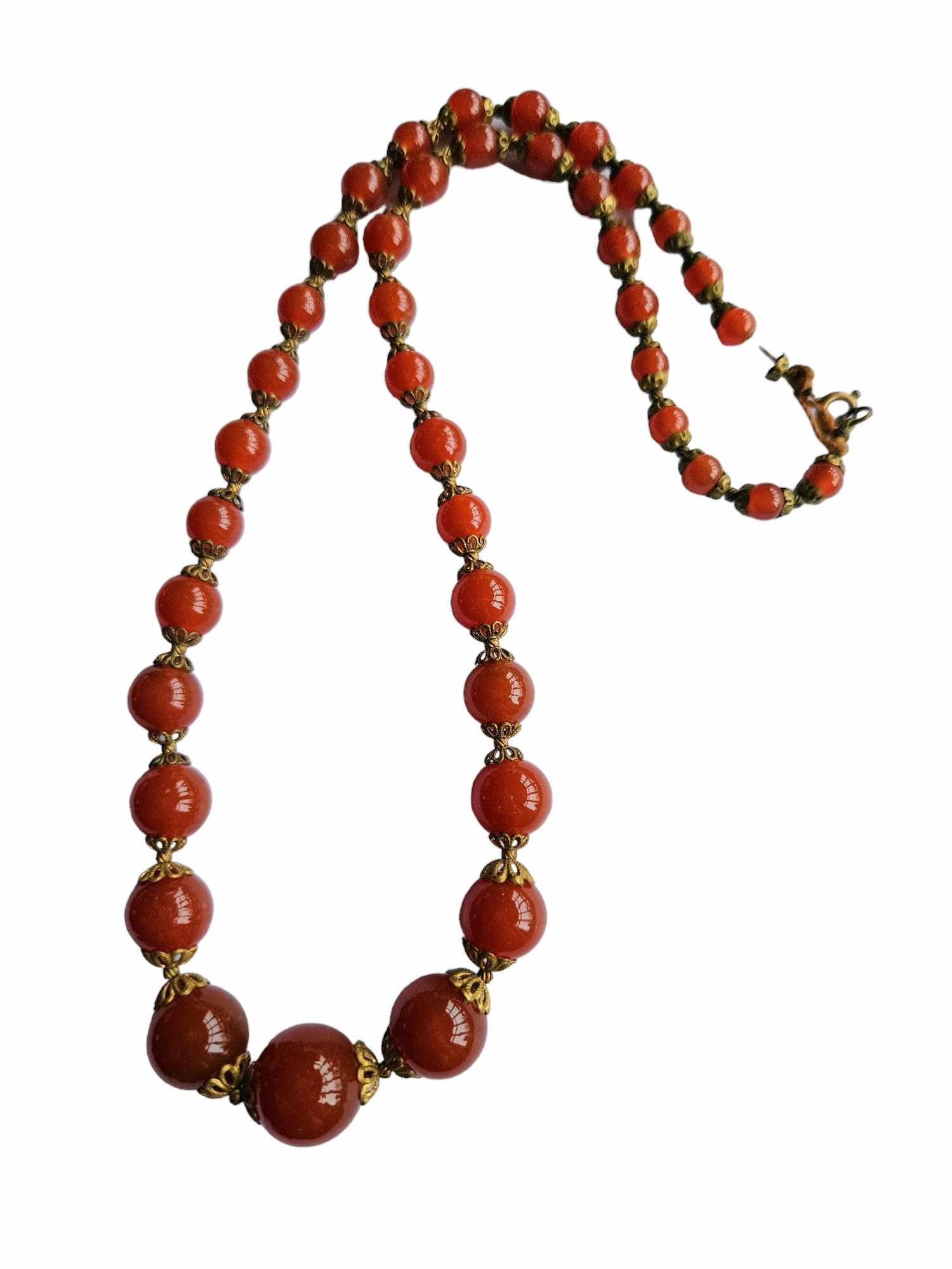 1930s Deco Red/Brown Glass and Metal Necklace