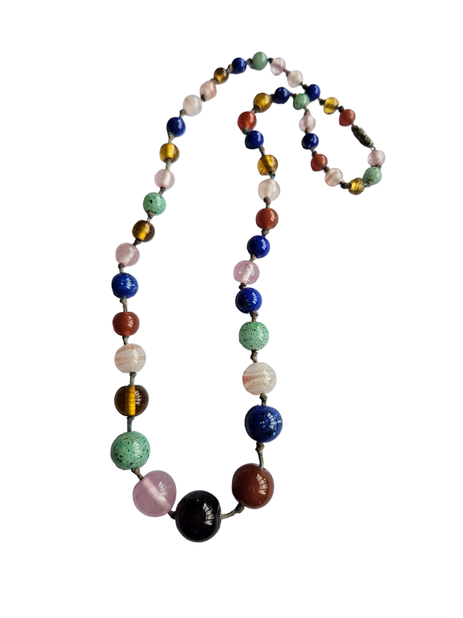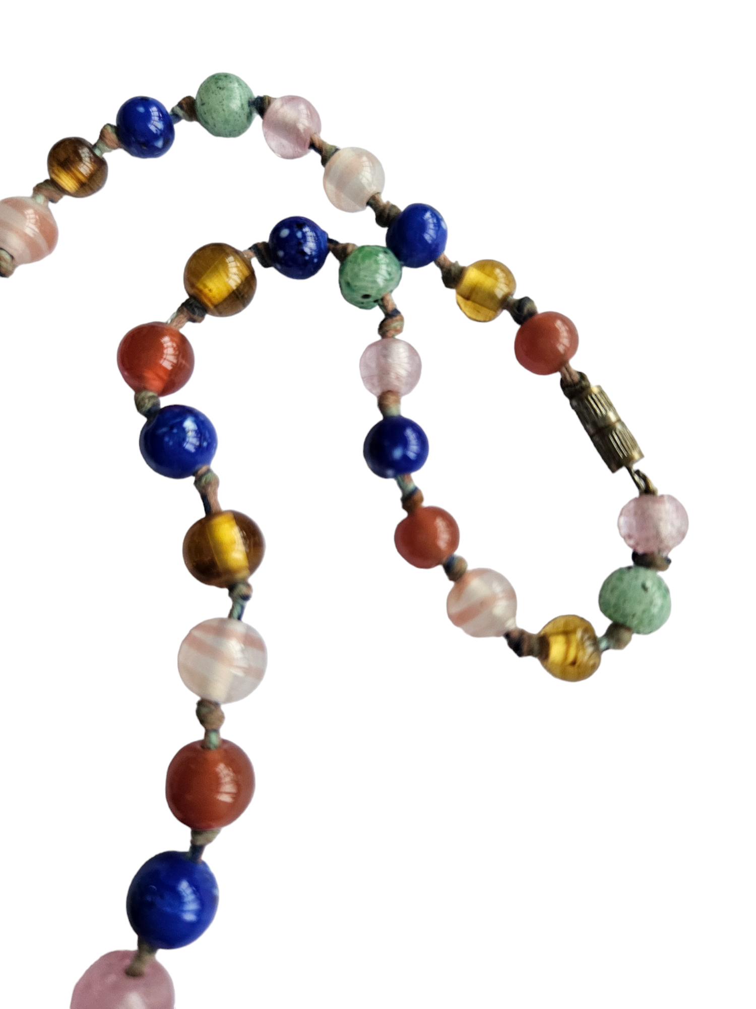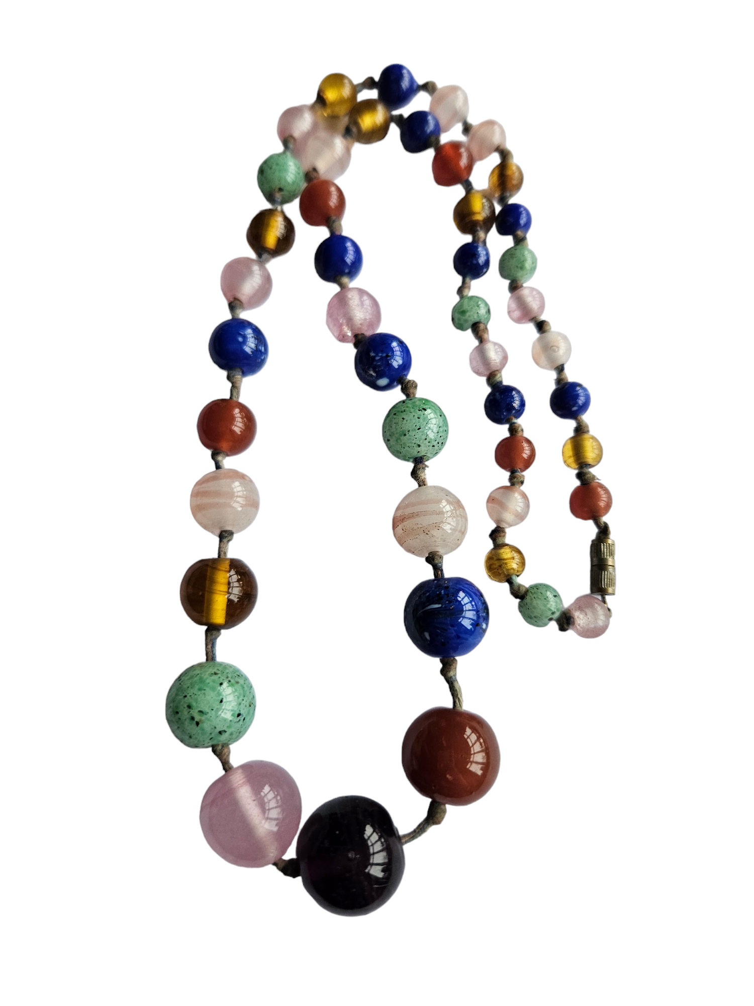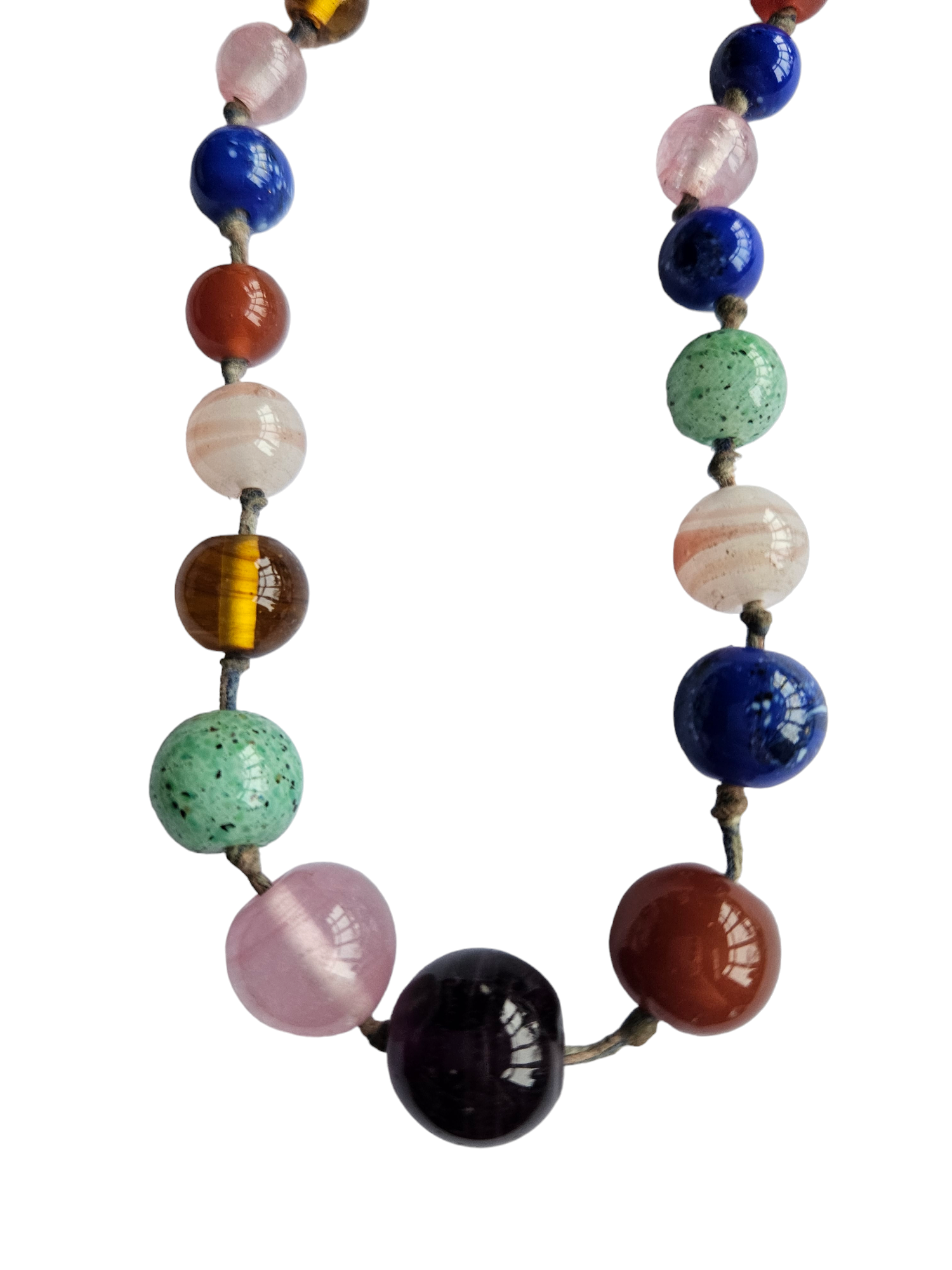 1930s Multicoloured Knotted Glass Necklace