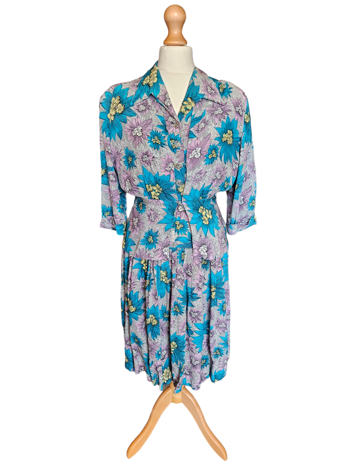 1940s CC41 Teal, Lilac and Yellow Crepe Dress and Jacket Set
